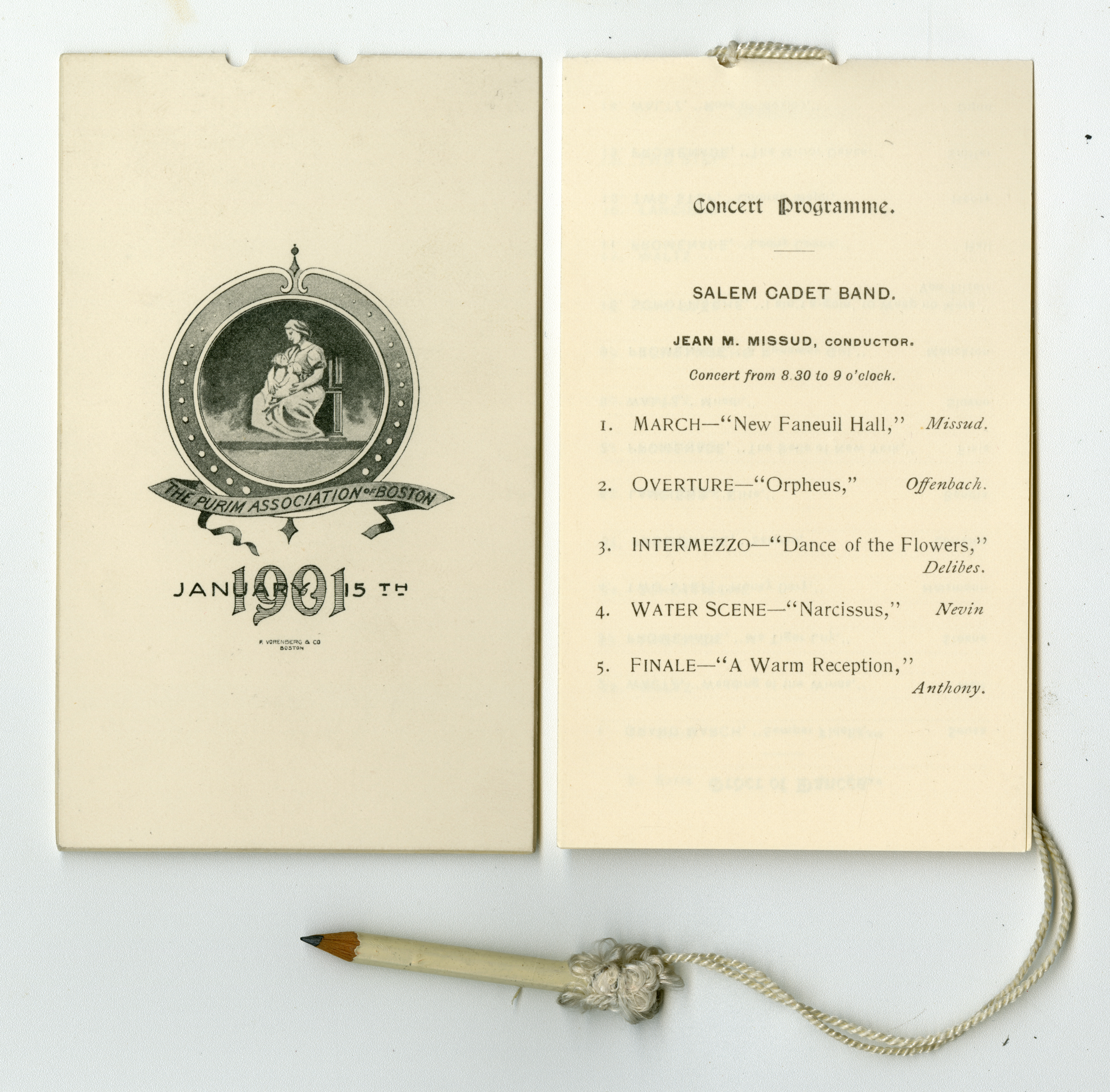 Program book and dance card for the Charity Ball of the Purim Association of Boston on January 15th, 1901.