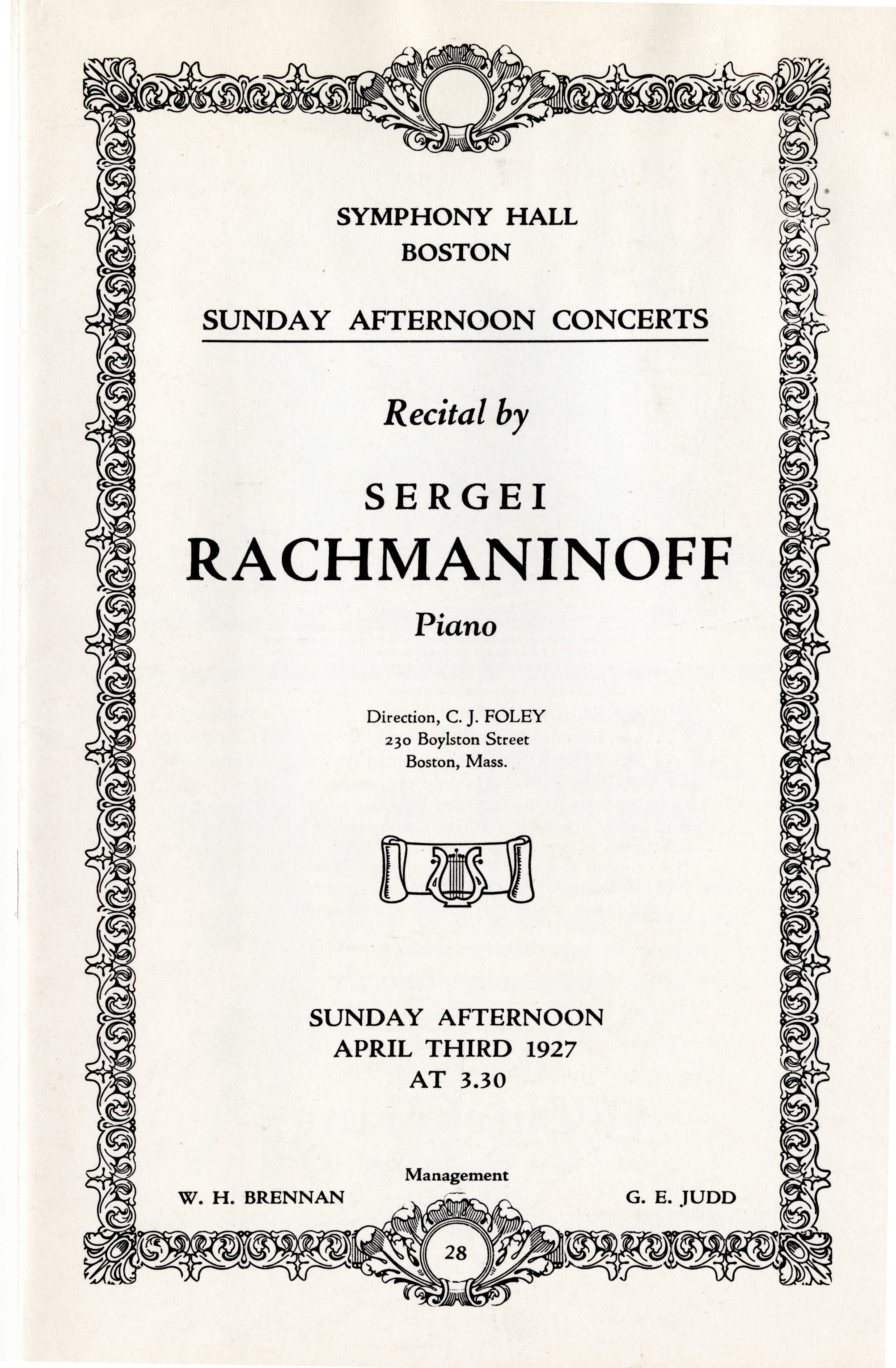 Program book for a piano recital given by Sergei Rachmaninoff on April 3rd, 1927.