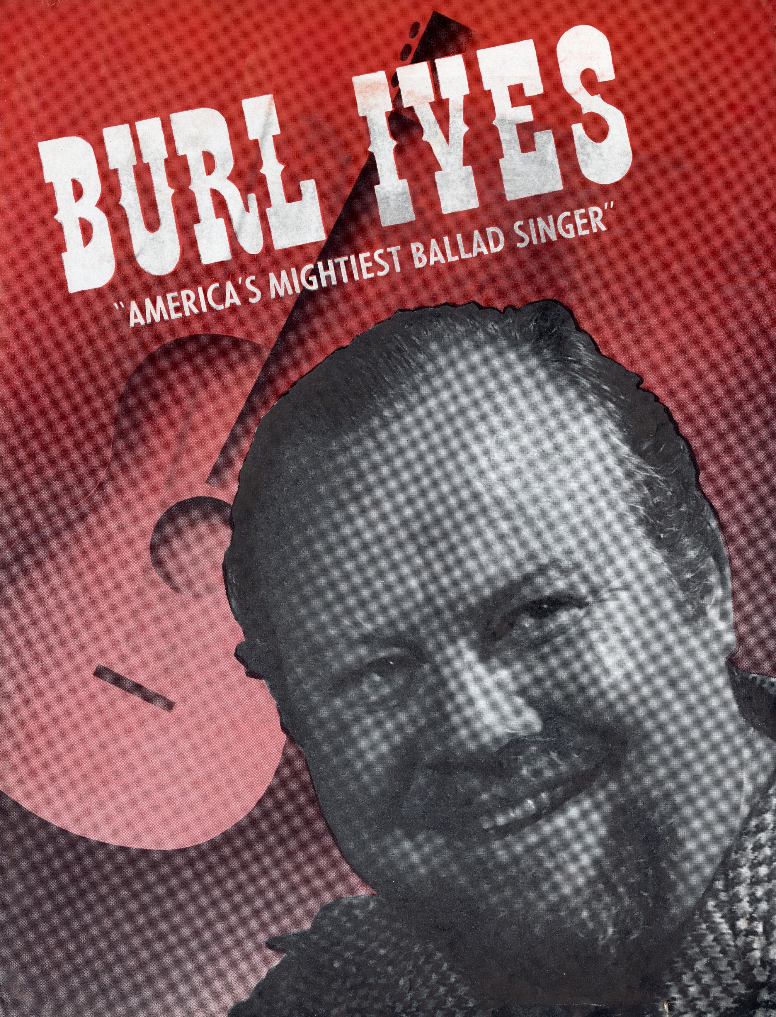 Burl Ives, an American folk singer and actor, performed at Symphony Hall several times throughout his career. In 1949, Ives performed a series of folksongs and ballads and accompanied himself on guitar.