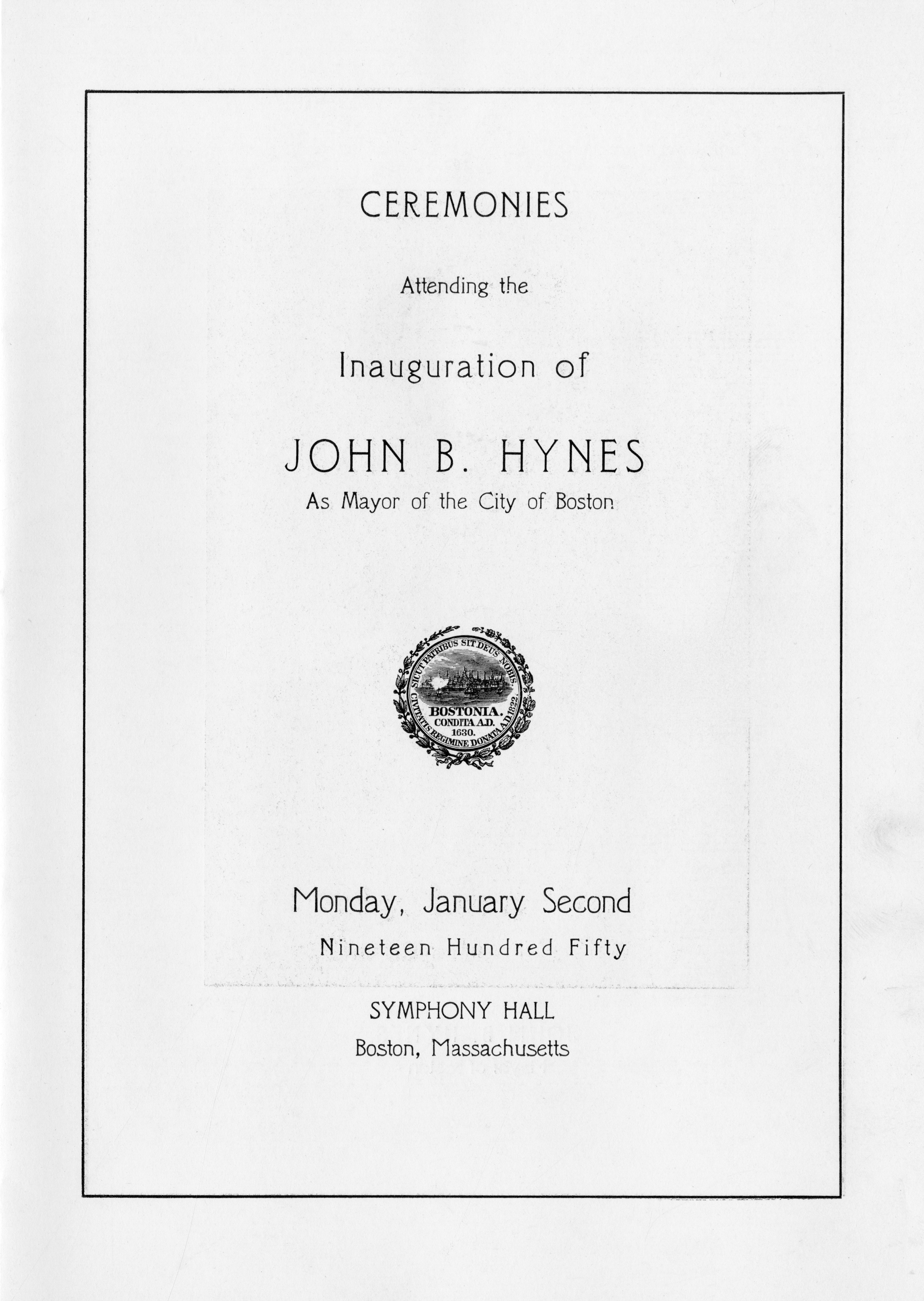 Program book for the inauguration of John B. Hynes as mayor on January 2nd, 1950.
