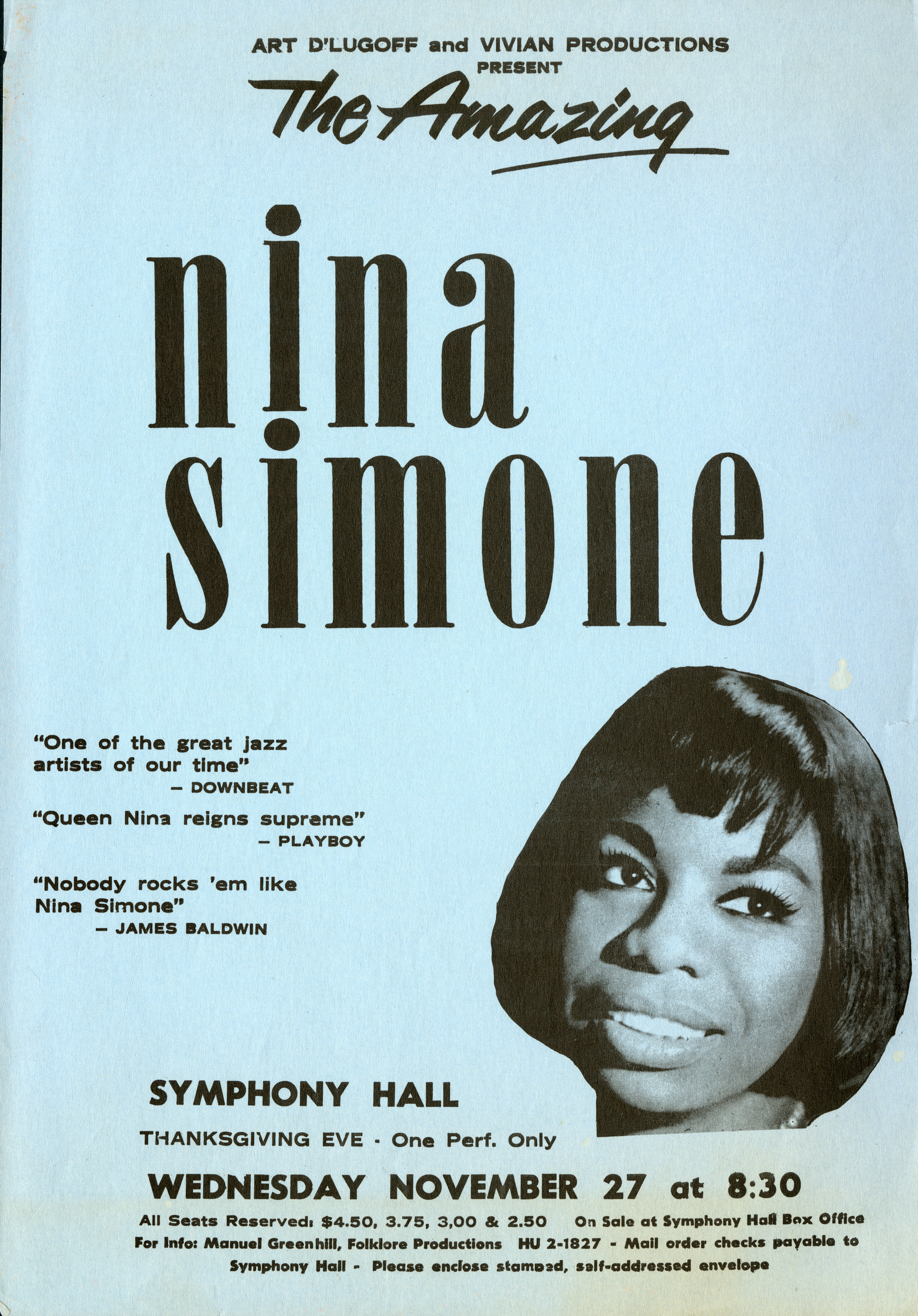 Poster advertising Nina Simone’s performance at Symphony Hall on November 27, 1963.