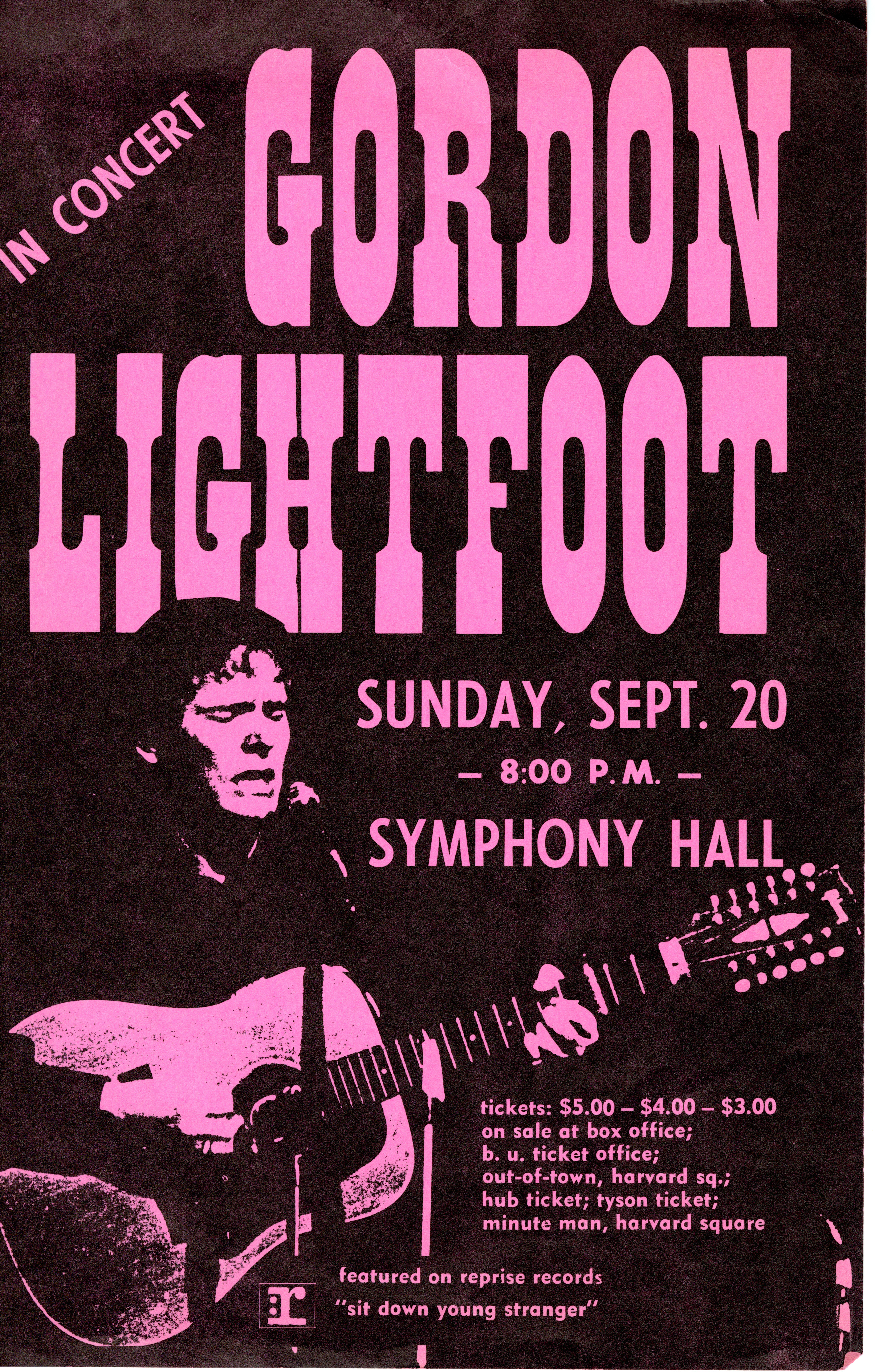 Flyer for a performance by Gordon Lightfoot on September 20th, 1970.