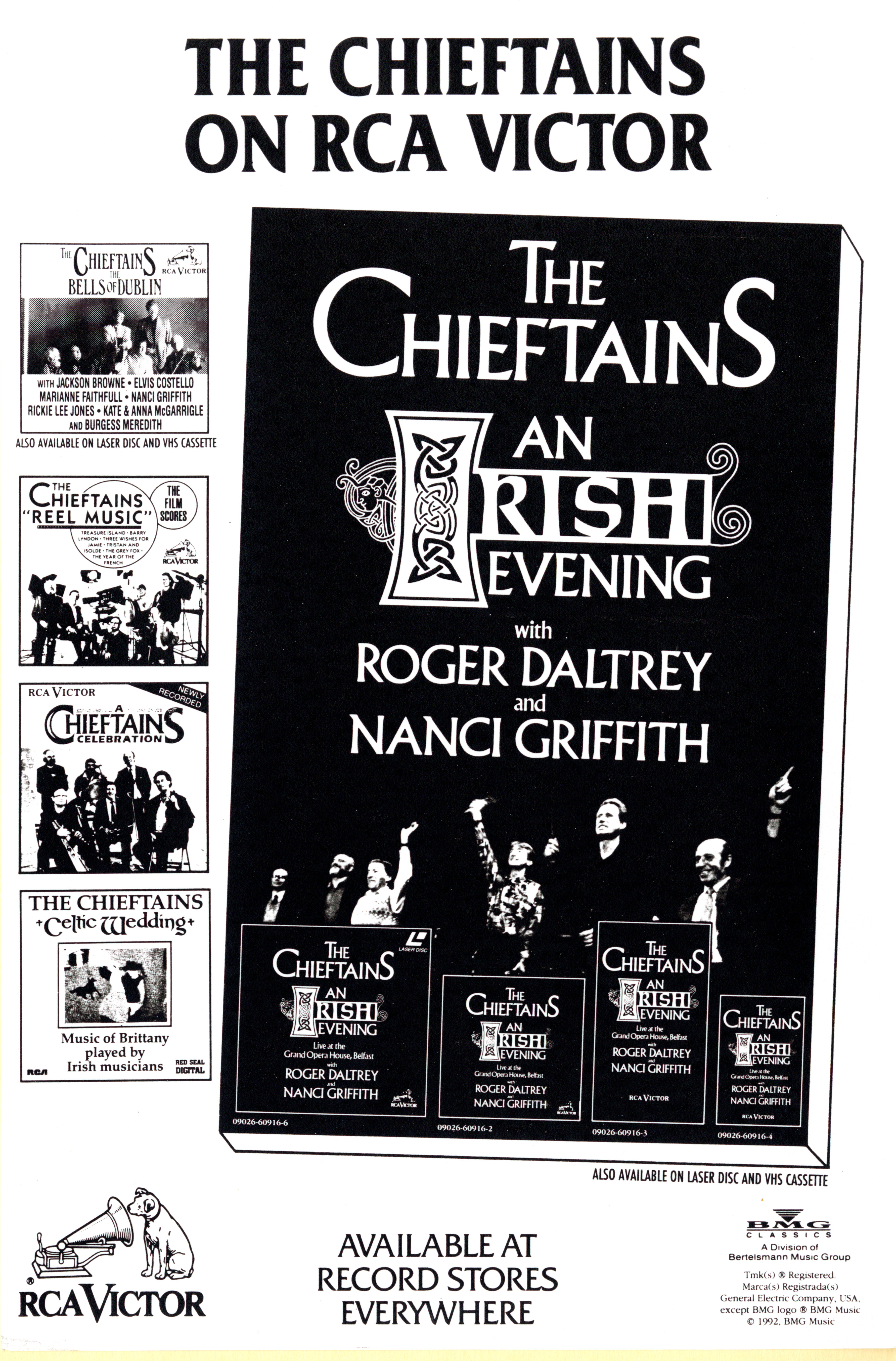 Flyer for a performance by the Chieftains on March 15th, 1992.