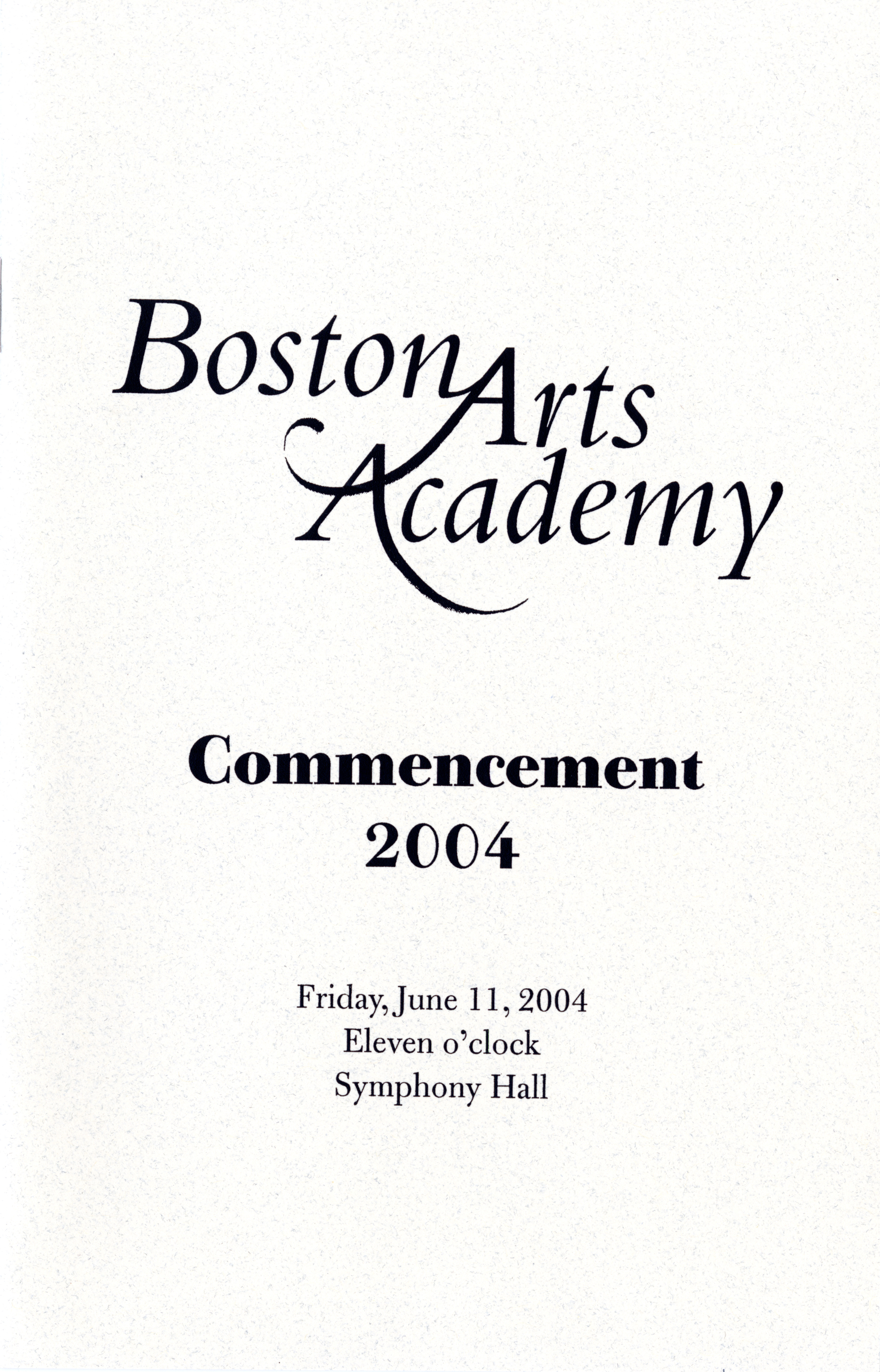 Program book for the commencement of the Boston Arts Academy on June 11th, 2004.