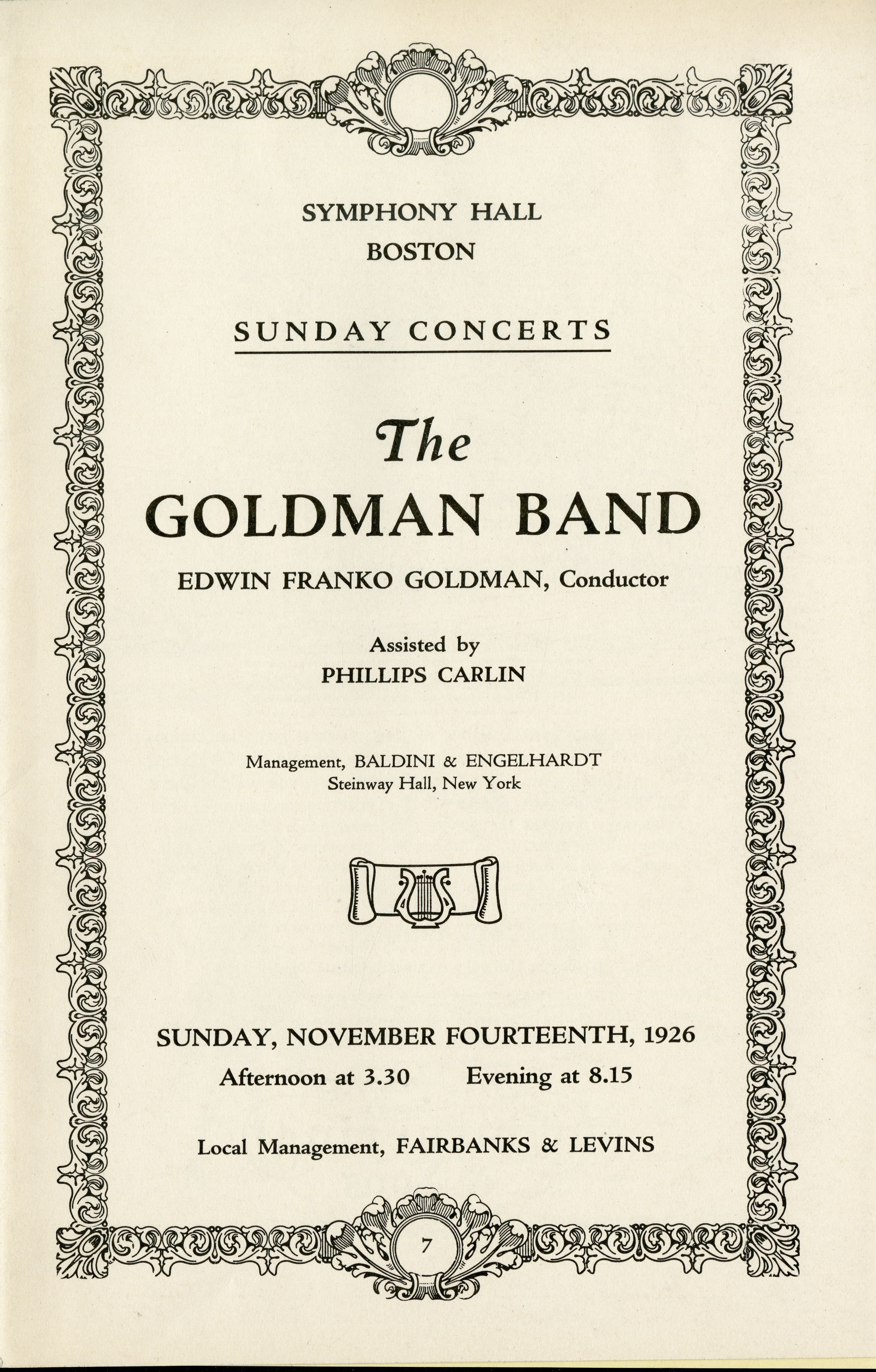 Program for a Goldman Band performance at Symphony Hall on November 14, 1926