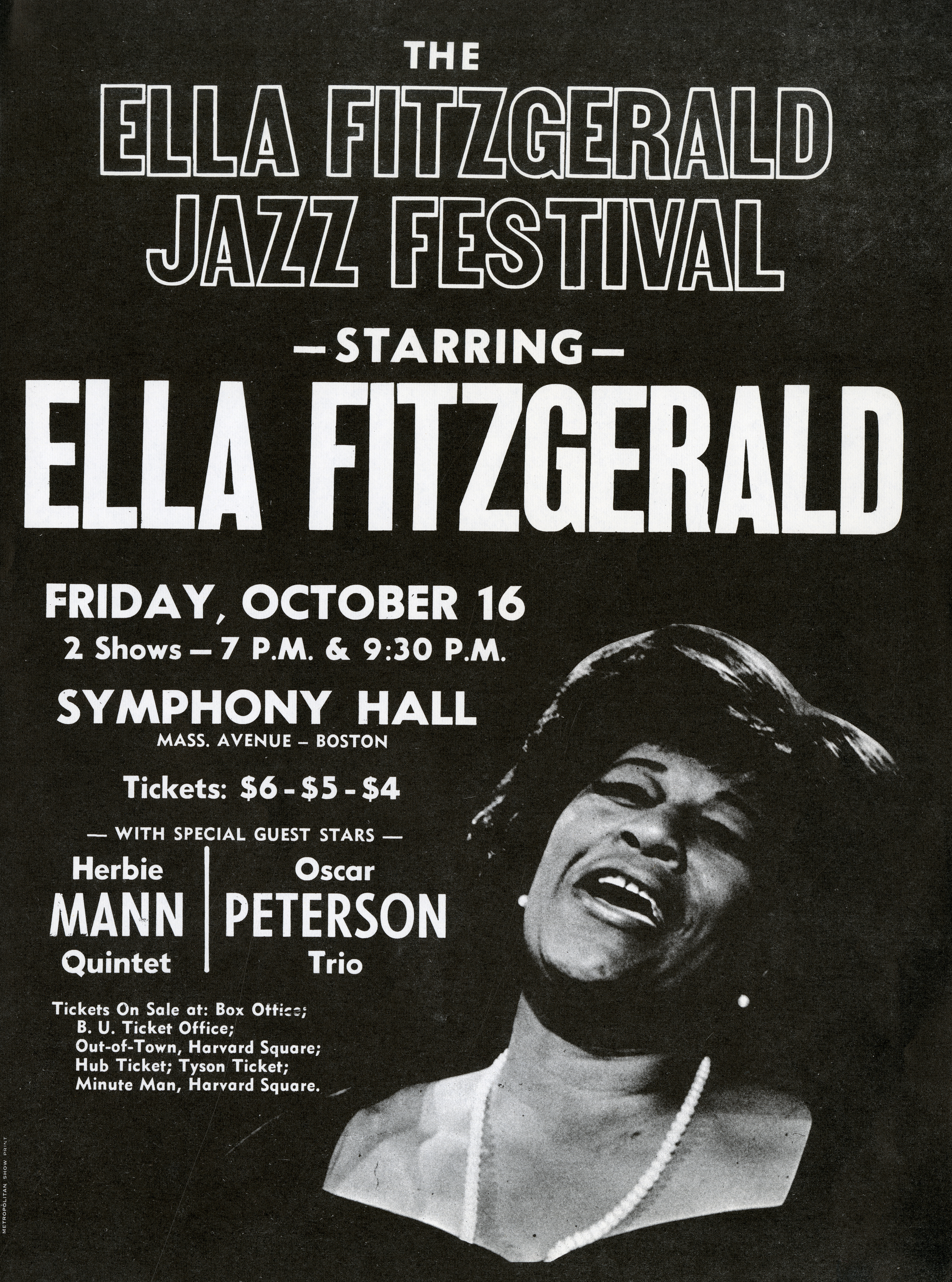 Poster advertising an Ella Fitzgerald Jazz Festival at Symphony Hall on October 16, 1970