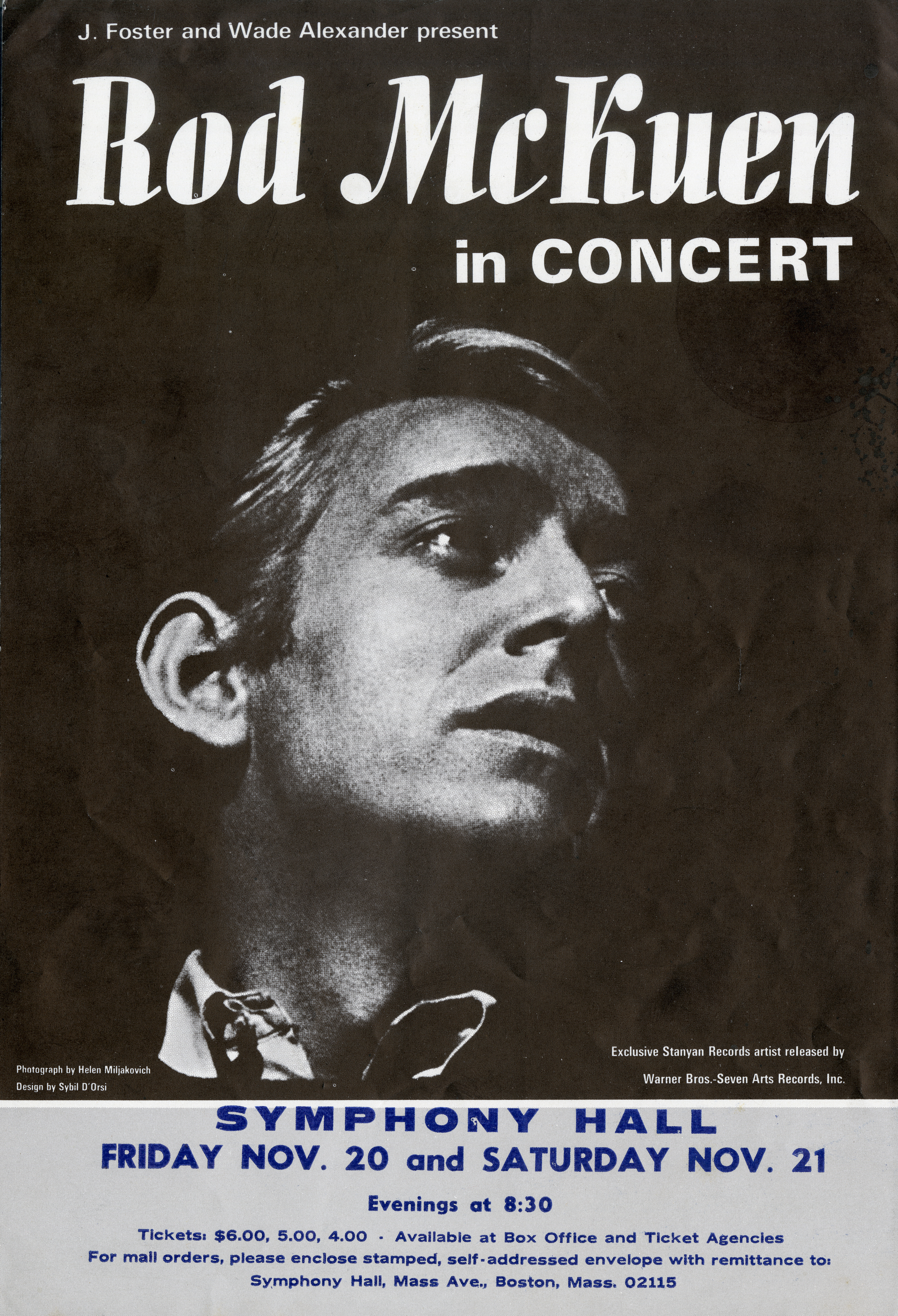 Poster advertising Rod McKuen’s performances at Symphony Hall on November 20 and 21, 1970
