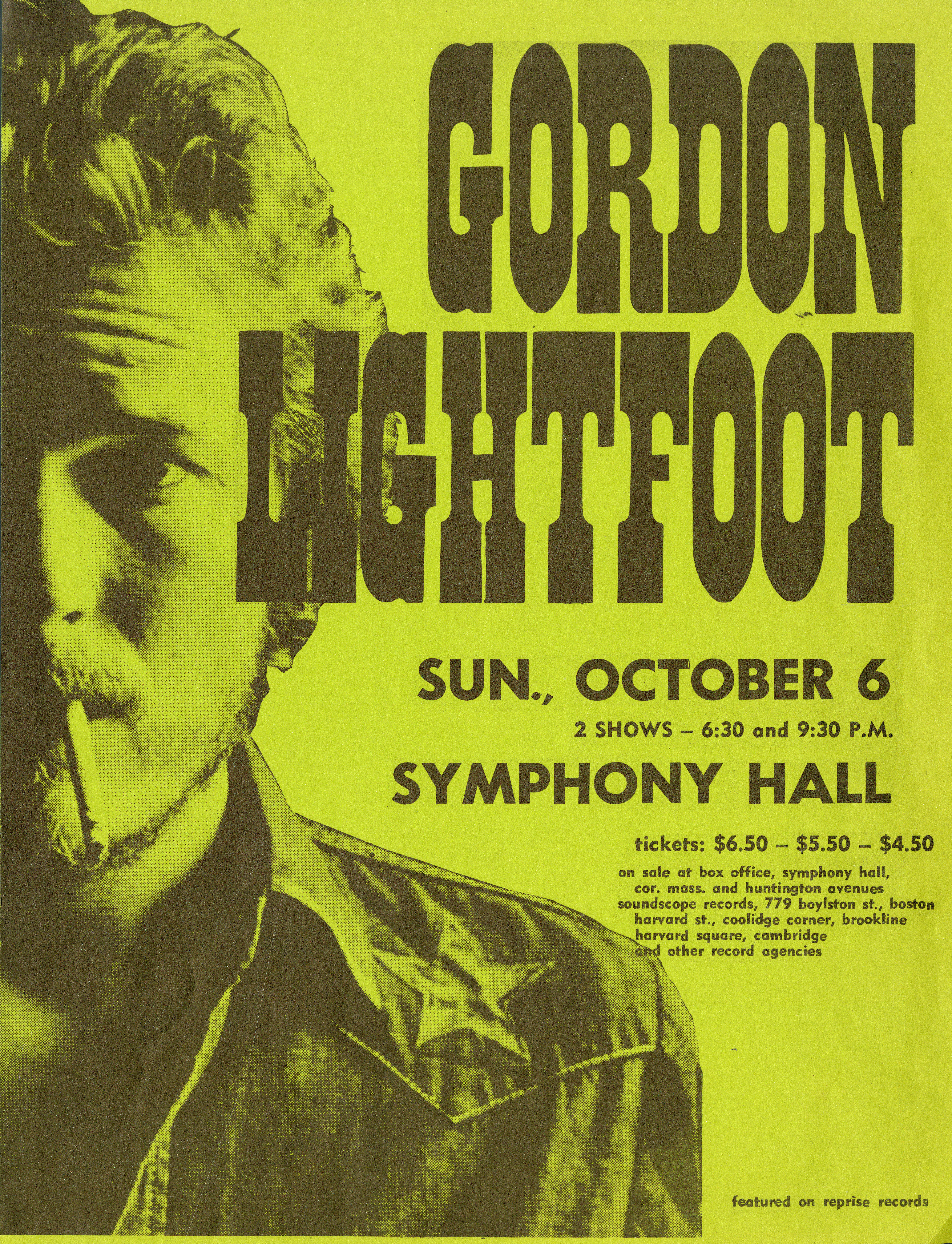 Poster advertising Gordon Lightfoot’s appearance at Symphony Hall on October 6, 1974