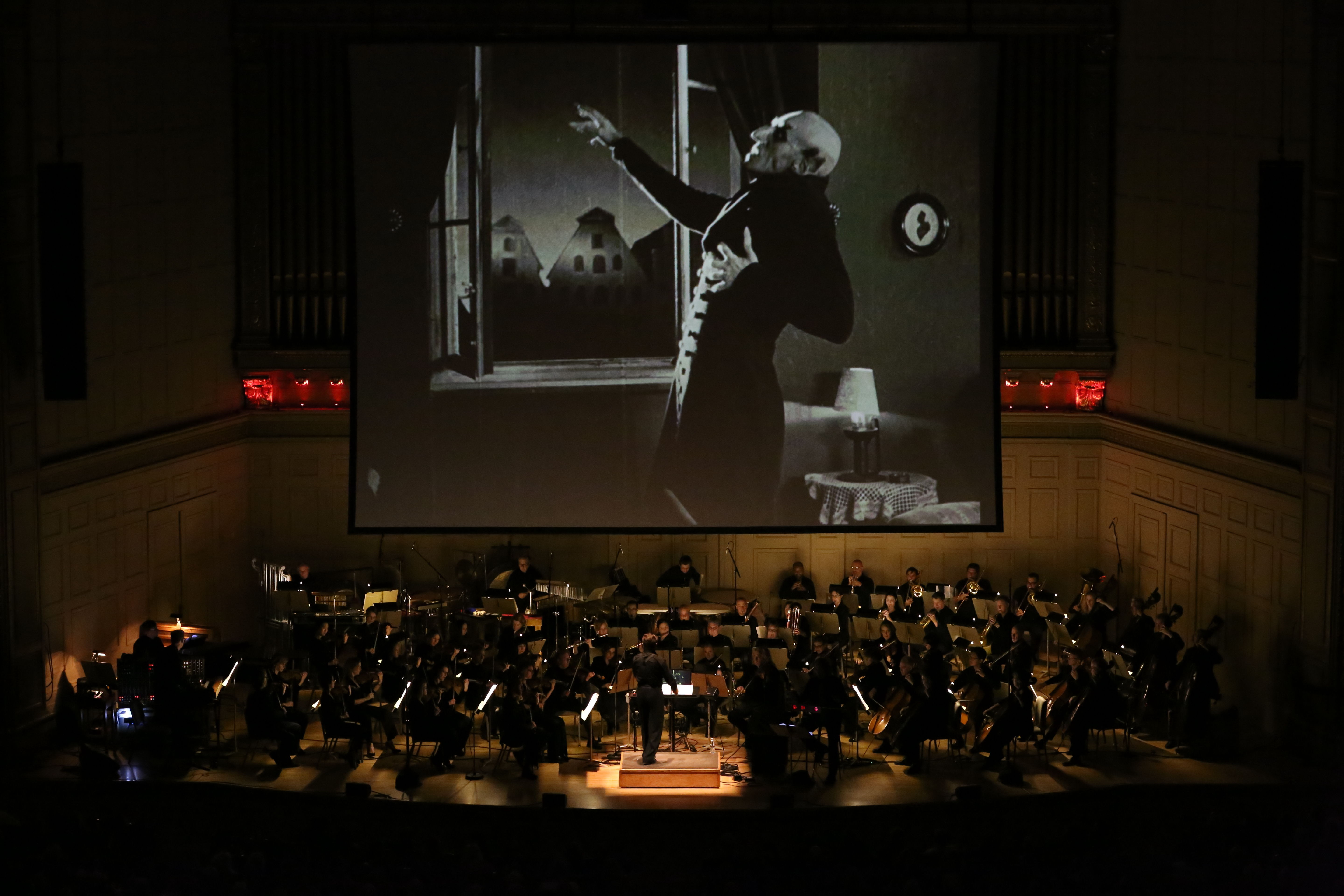 Silent films still make the occasional appearance in Symphony Hall. The most recent screening was a collaboration between Berklee College of Music and the Boston Pops for a Halloween celebration of the 1922 vampire classic Nosferatu.