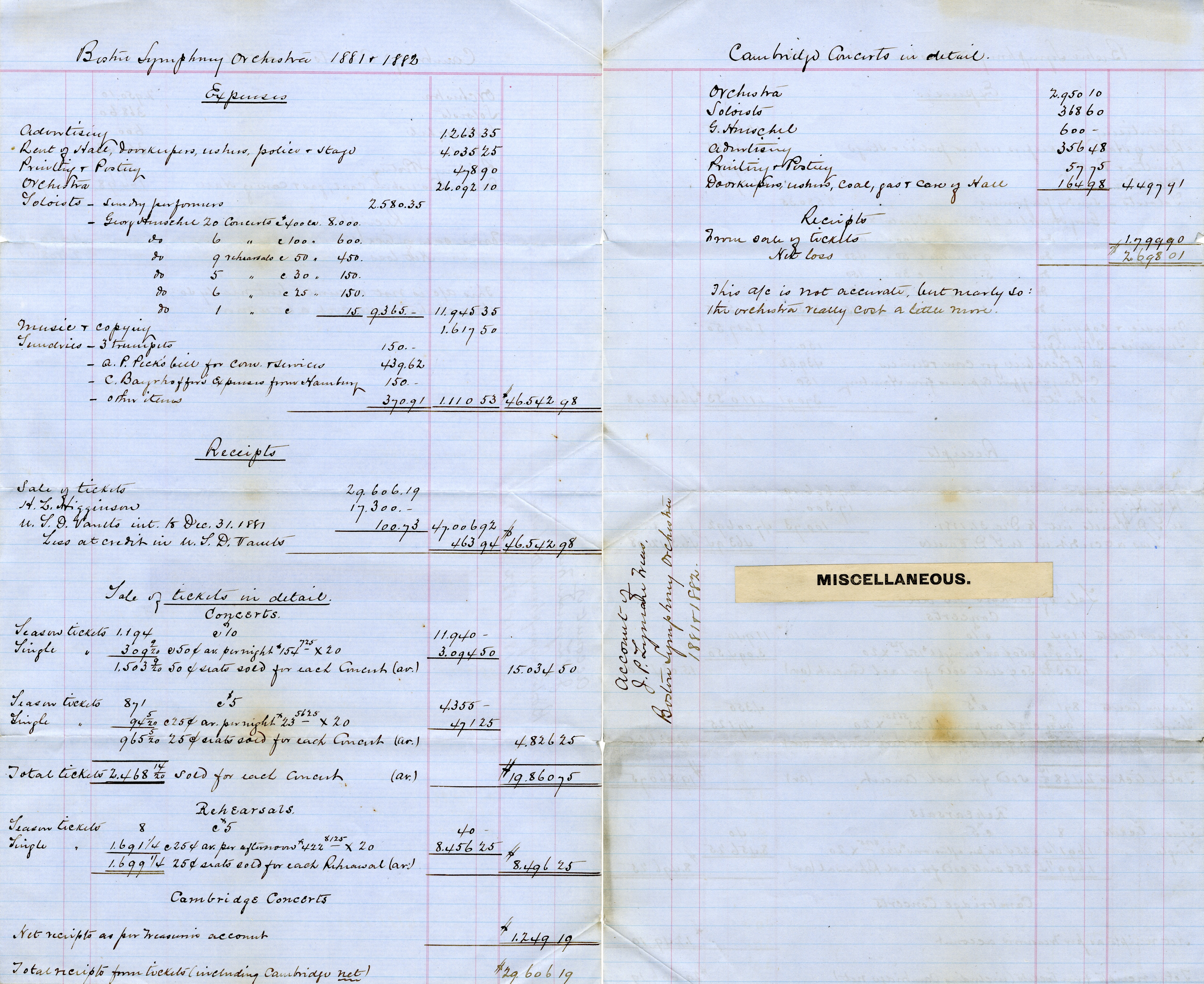 Accounting of expenses of the BSO for the first season, 1881-1882