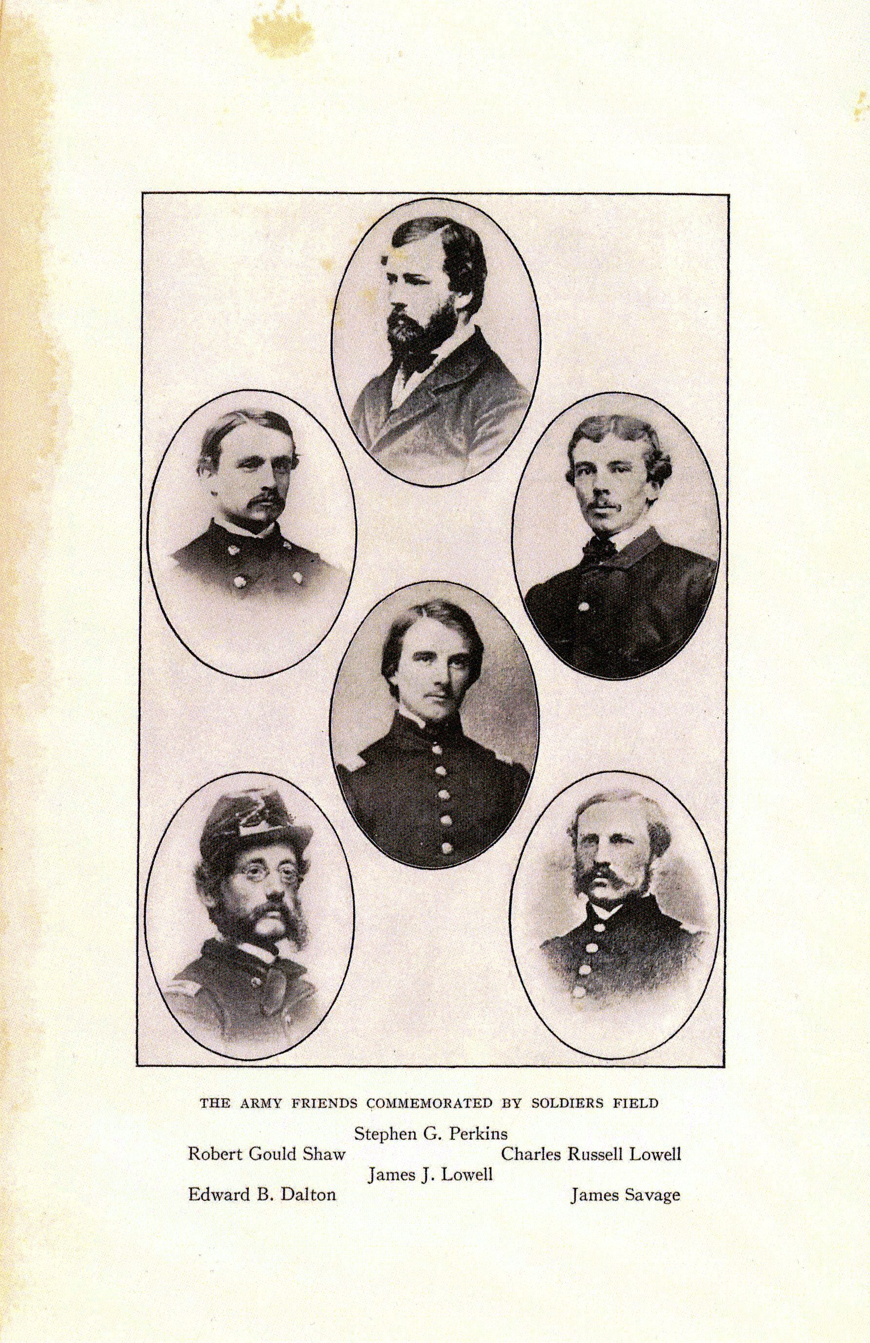 The only stipulation that Henry Lee Higginson gave when he donated a field to Harvard University was that it be dedicated to five officers who died in defense of the Union, and one physician. (Click the image to view all names/portraits).