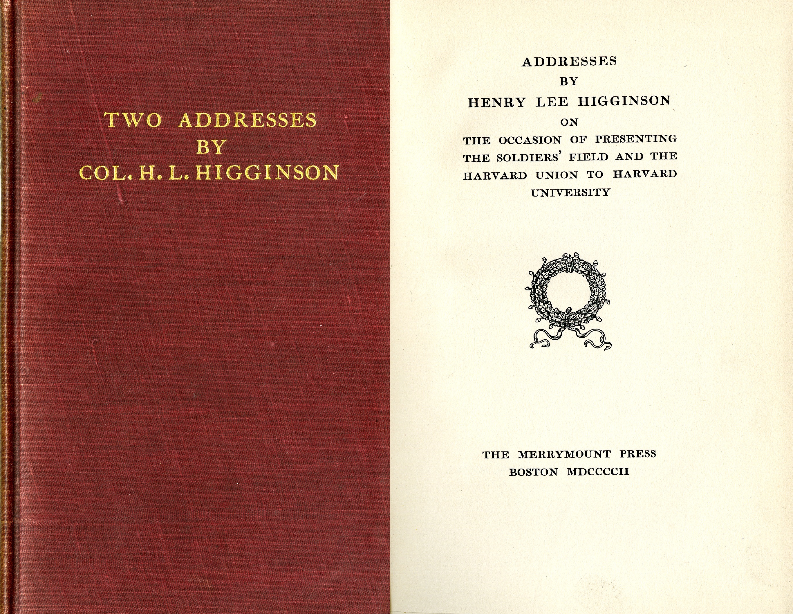 Excerpt from the speech delivered by Henry Lee Higginson on the occasion of his gift of The Soldier’s Field to Harvard, June 10, 1890: