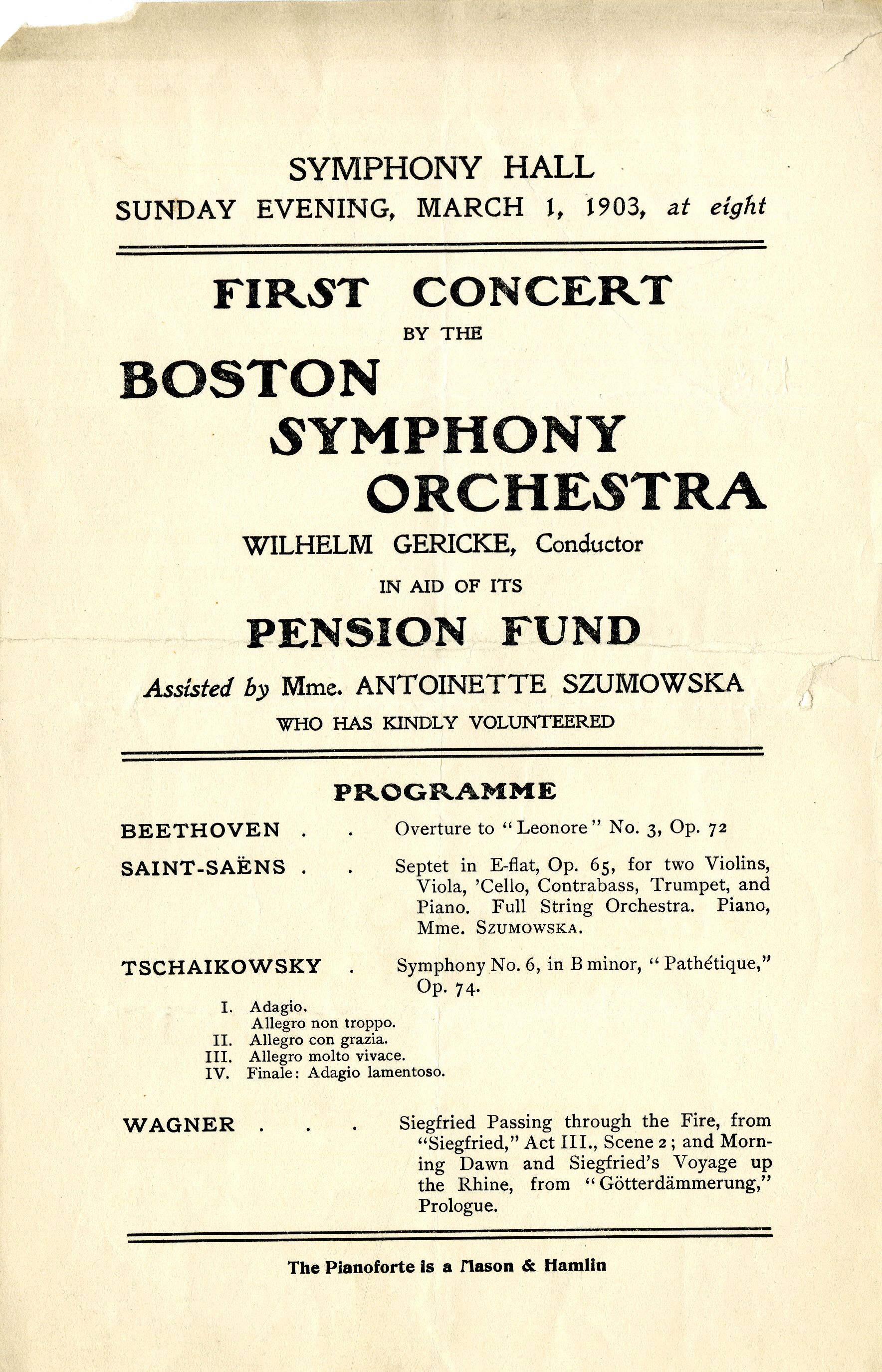 Concert program for the first BSO pension fund concert on March 1, 1903