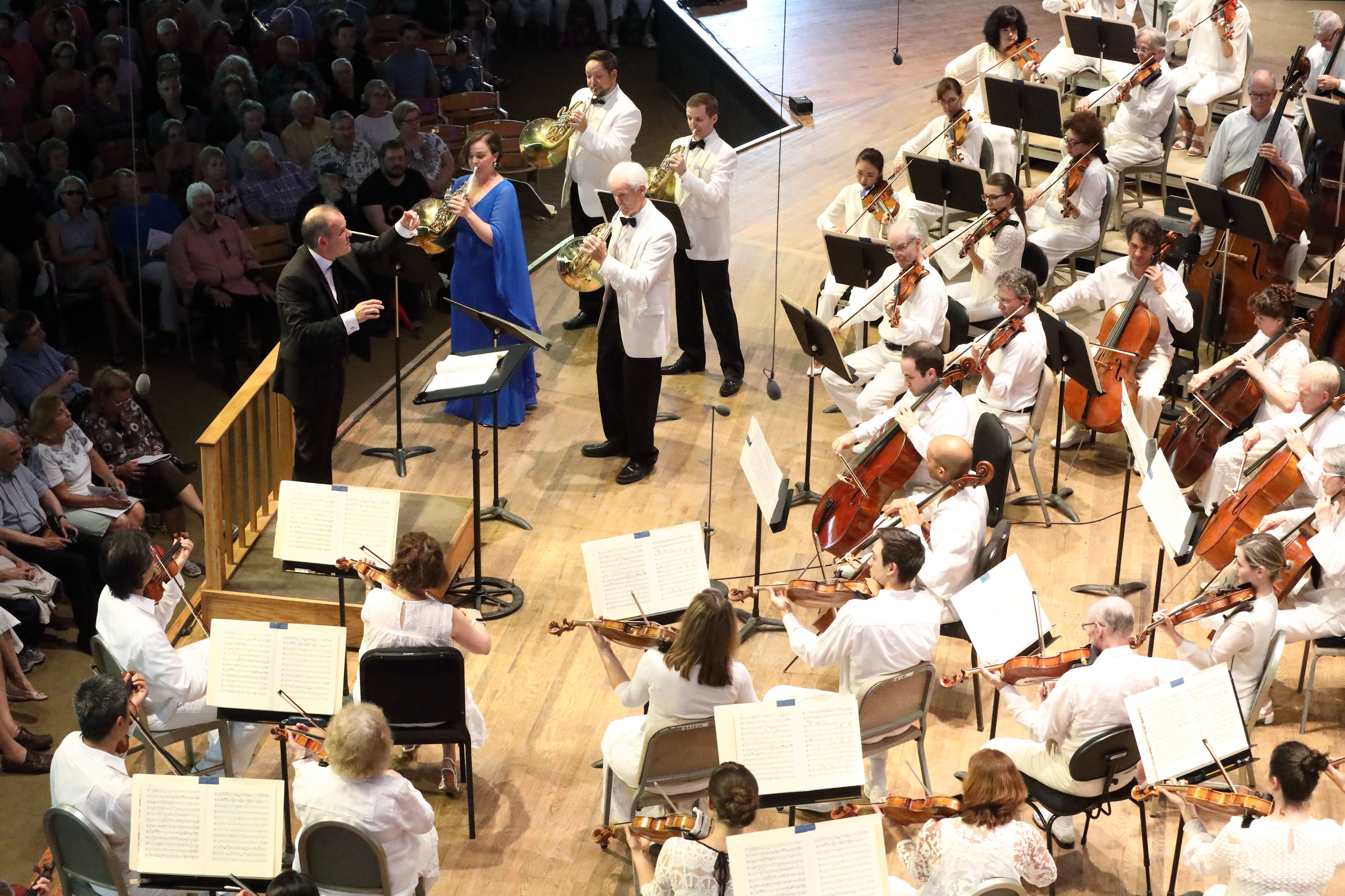 BSO French horn players Rachel Childers, Gus Sebring, Jason Snider, and Michael Winter perform Robert Schumann’s Konzertstück in F major for 4 horns, Op. 86 at Tanglewood with François-Xavier Roth conducting, August 8, 2019