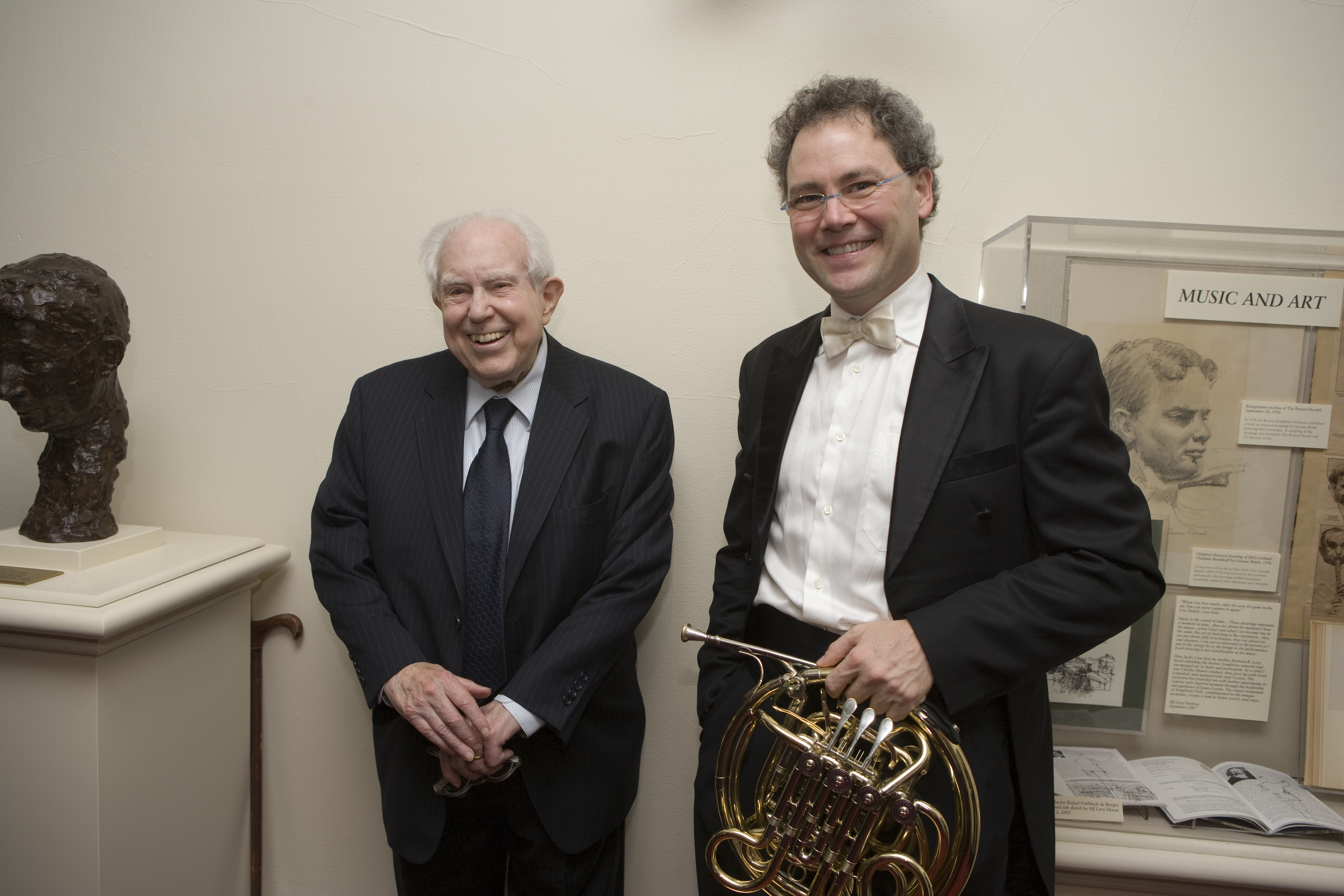 Elliott Carter and James Sommerville (BSO Principal Horn 1998-2022) following the world premiere performance of Carter’s Horn Concerto in Symphony Hall, November 15, 2007
