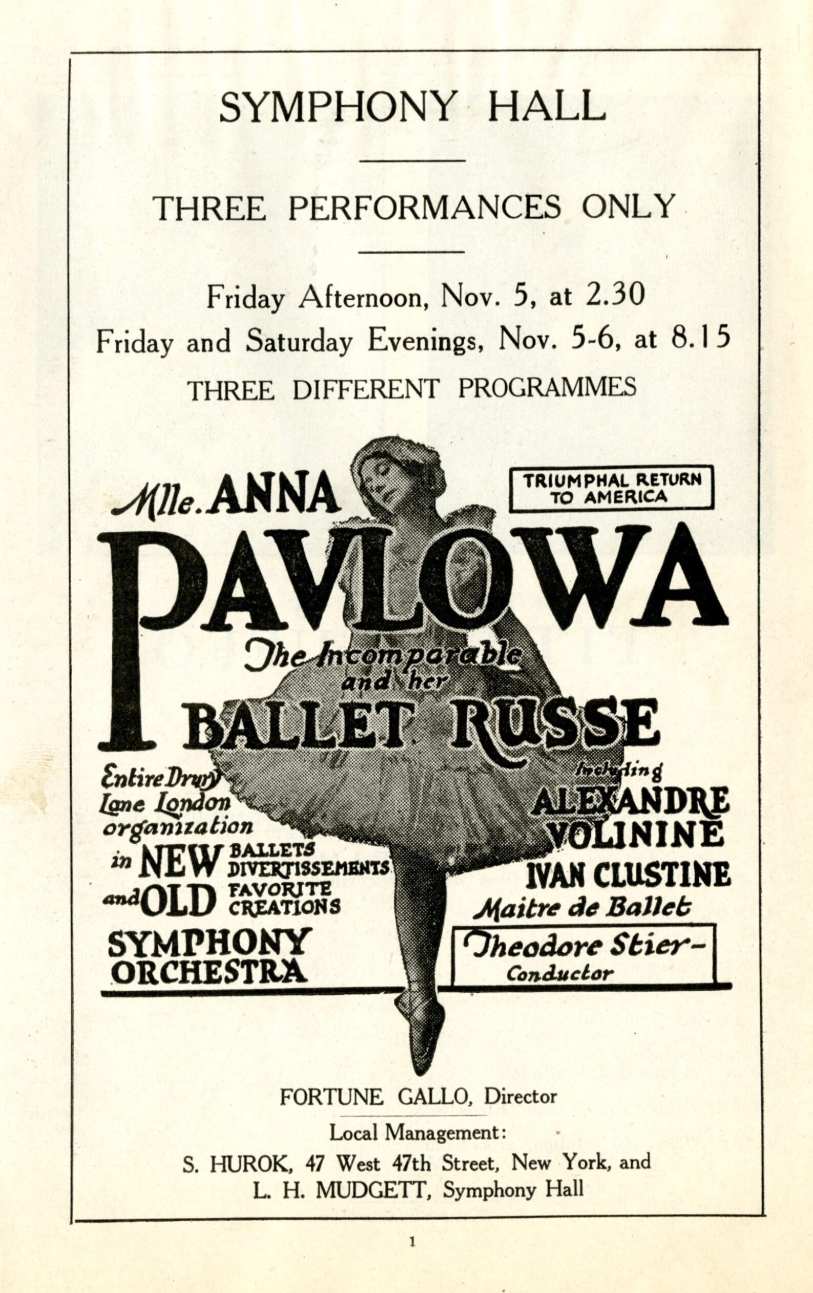 Flyer for the dance performance of Anna Pavlova and the Ballet Russe on November 6th, 1920.
