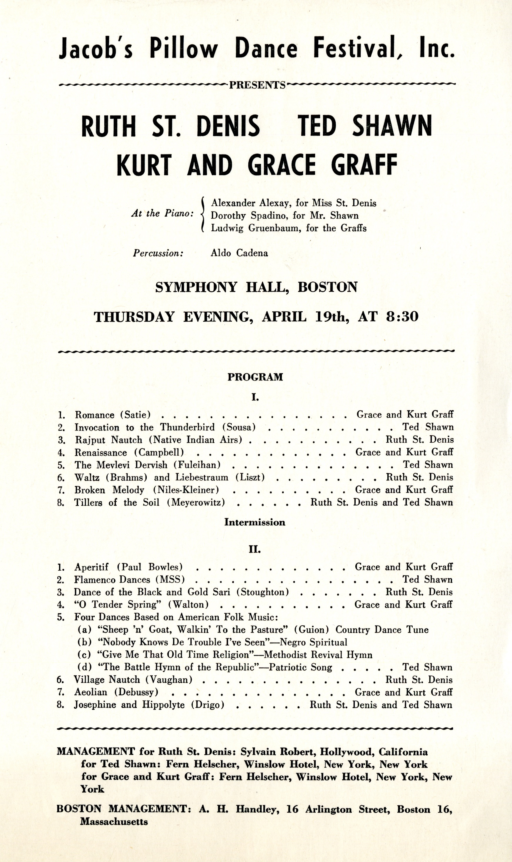 Program for appearance of Jacob’s Pillow dancers at Symphony Hall on April 19, 1945