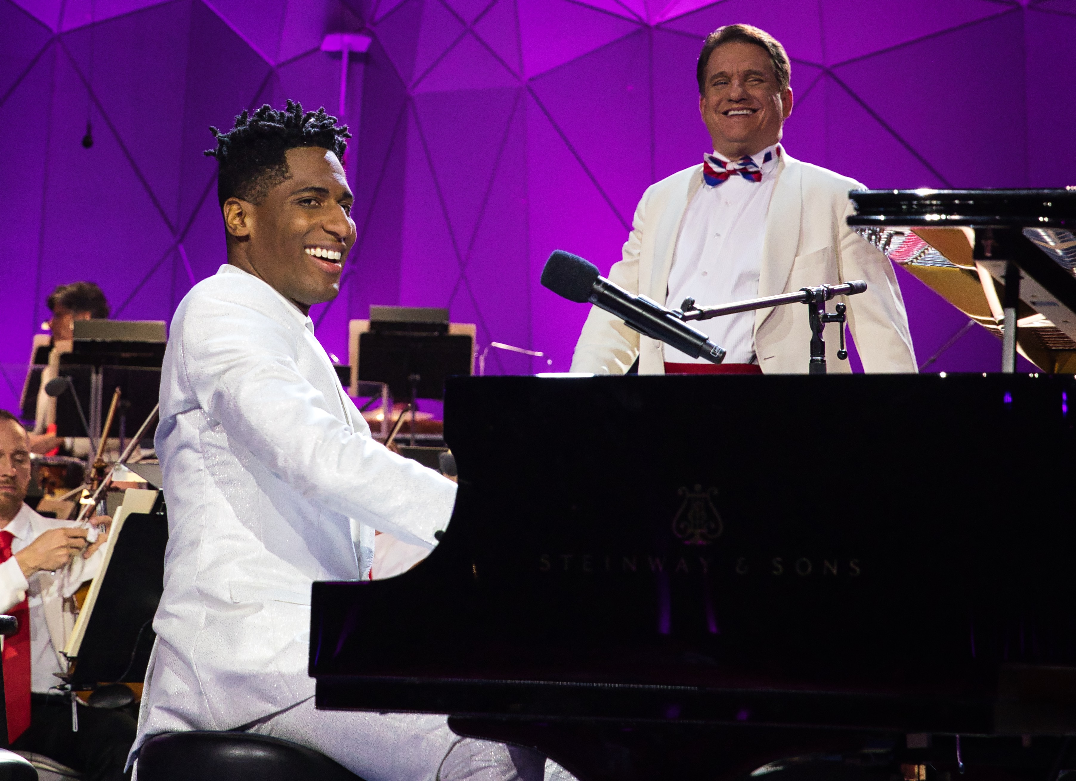 Jon Batiste and conductor Keith Lockhart during a Pops rehearsal at Tanglewood, July 3, 2021