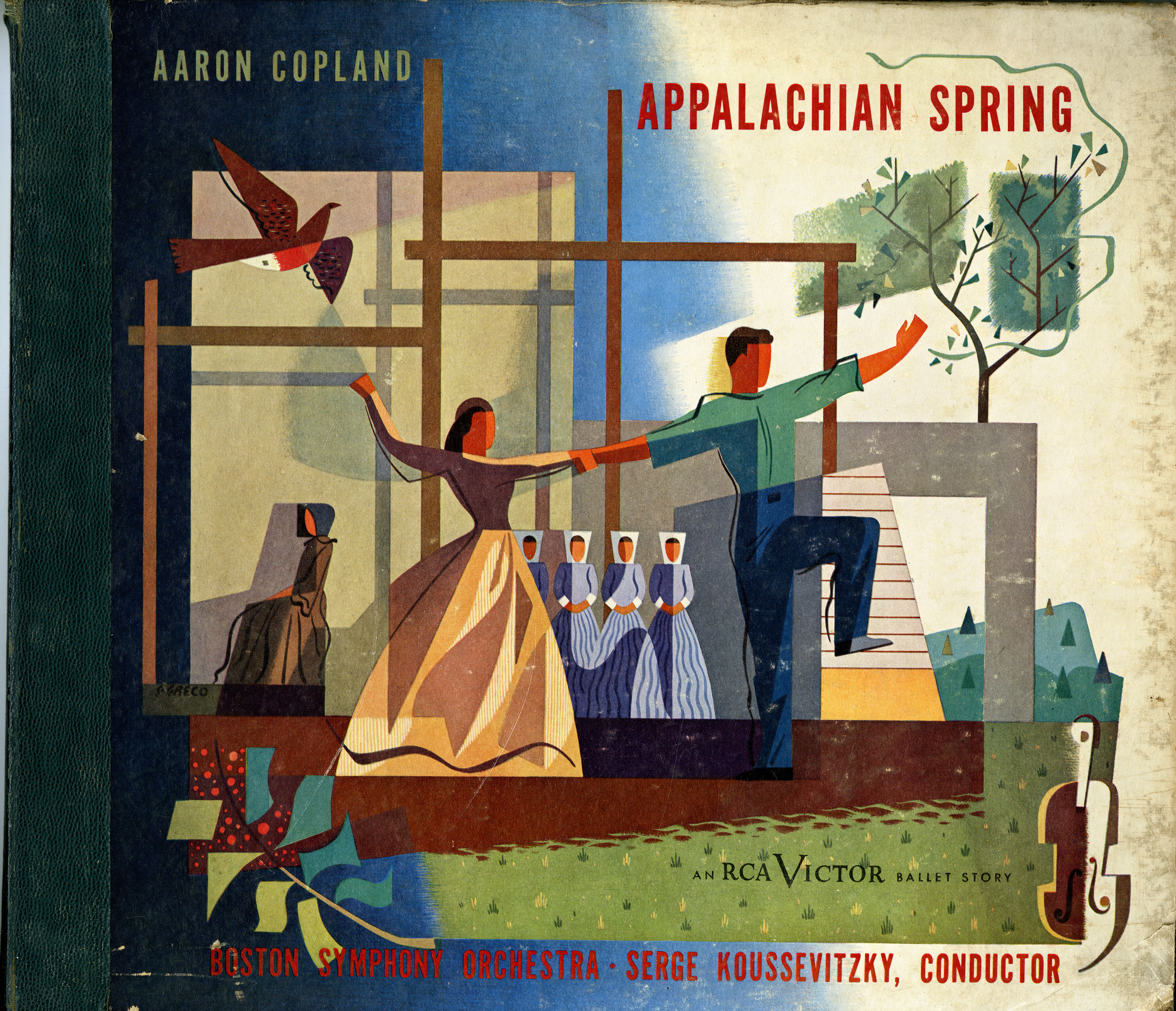 Three-disc 78 rpm record featuring Aaron Copland’s Appalachian Spring, recorded by Serge Koussevitzky and the BSO