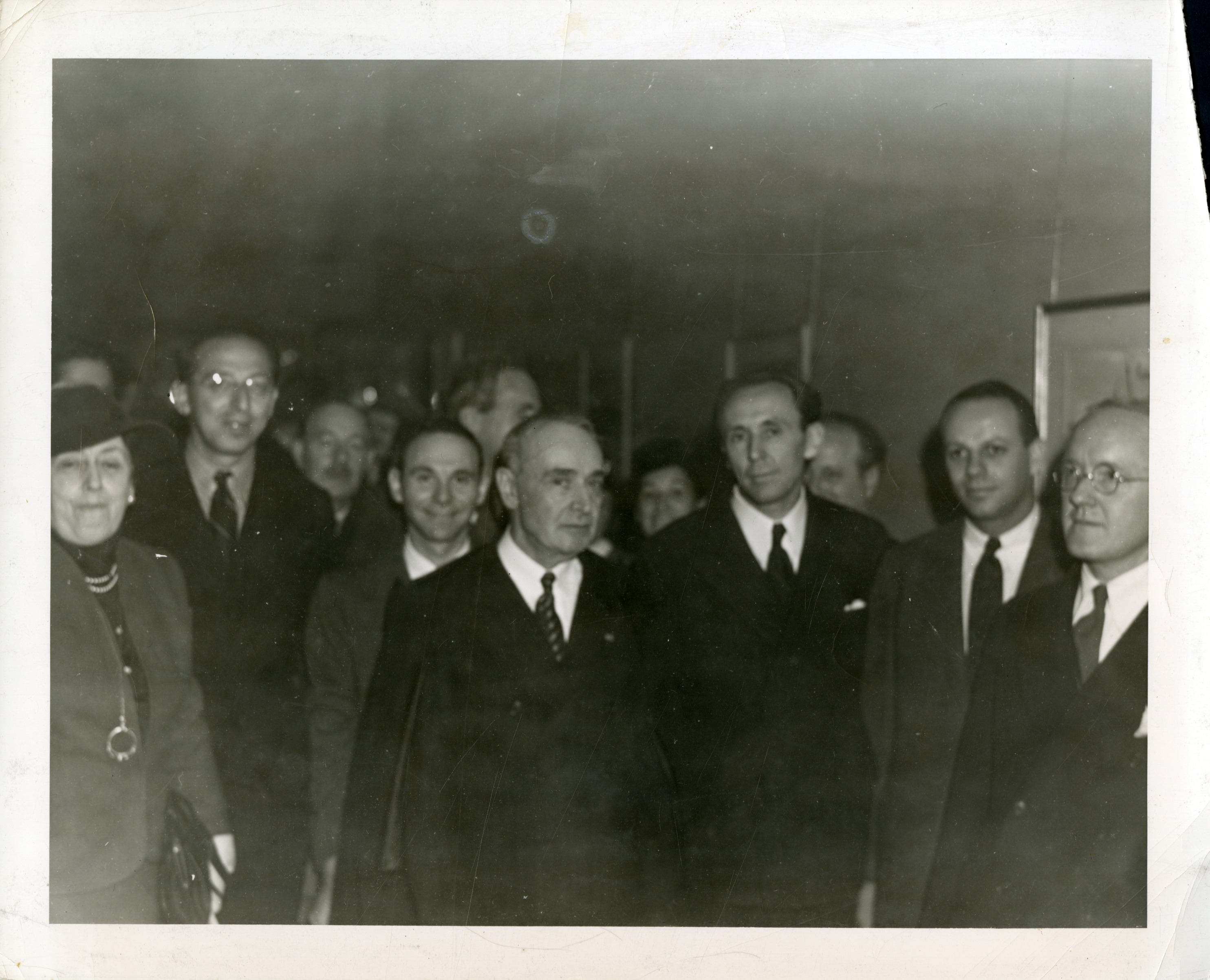 Koussevitzky poses with composers (mostly American) after a BSO performance of John Alden Carpenter’s Concerto for Violin, March 3, 1939