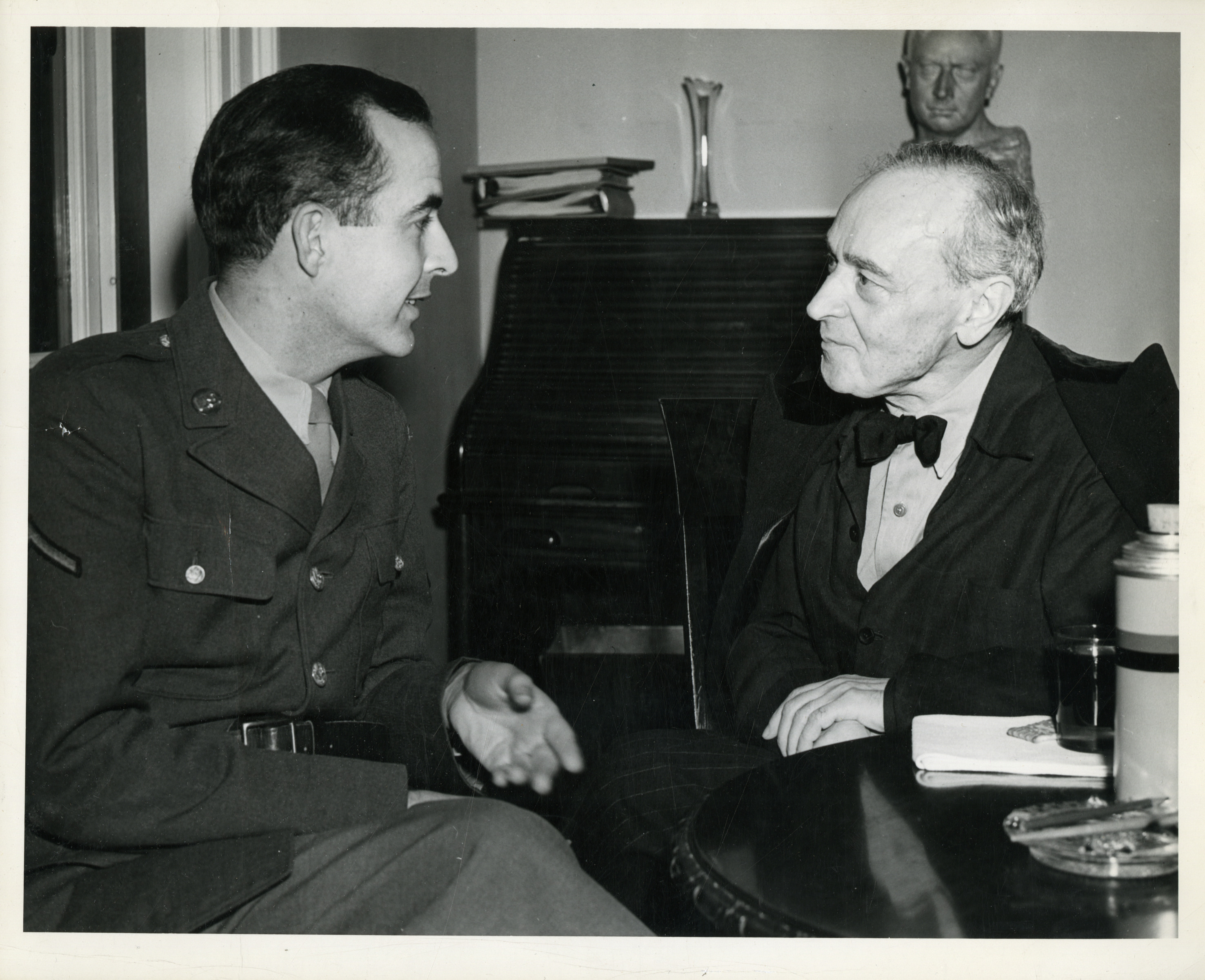 Composer Samuel Barber chats with conductor Serge Koussevitzky, ca. March 1944