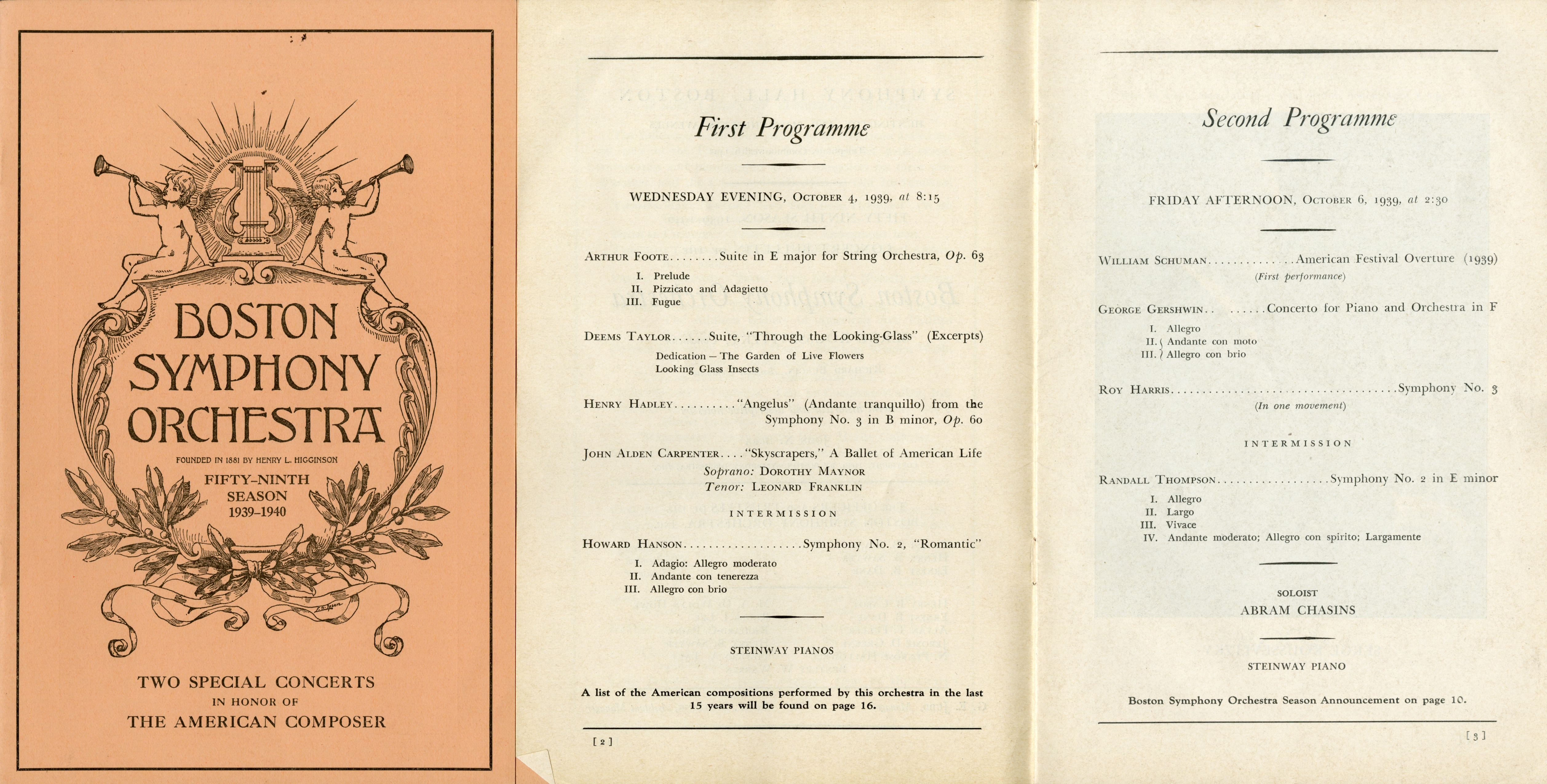 Program book for the festival honoring American composers, October 1939