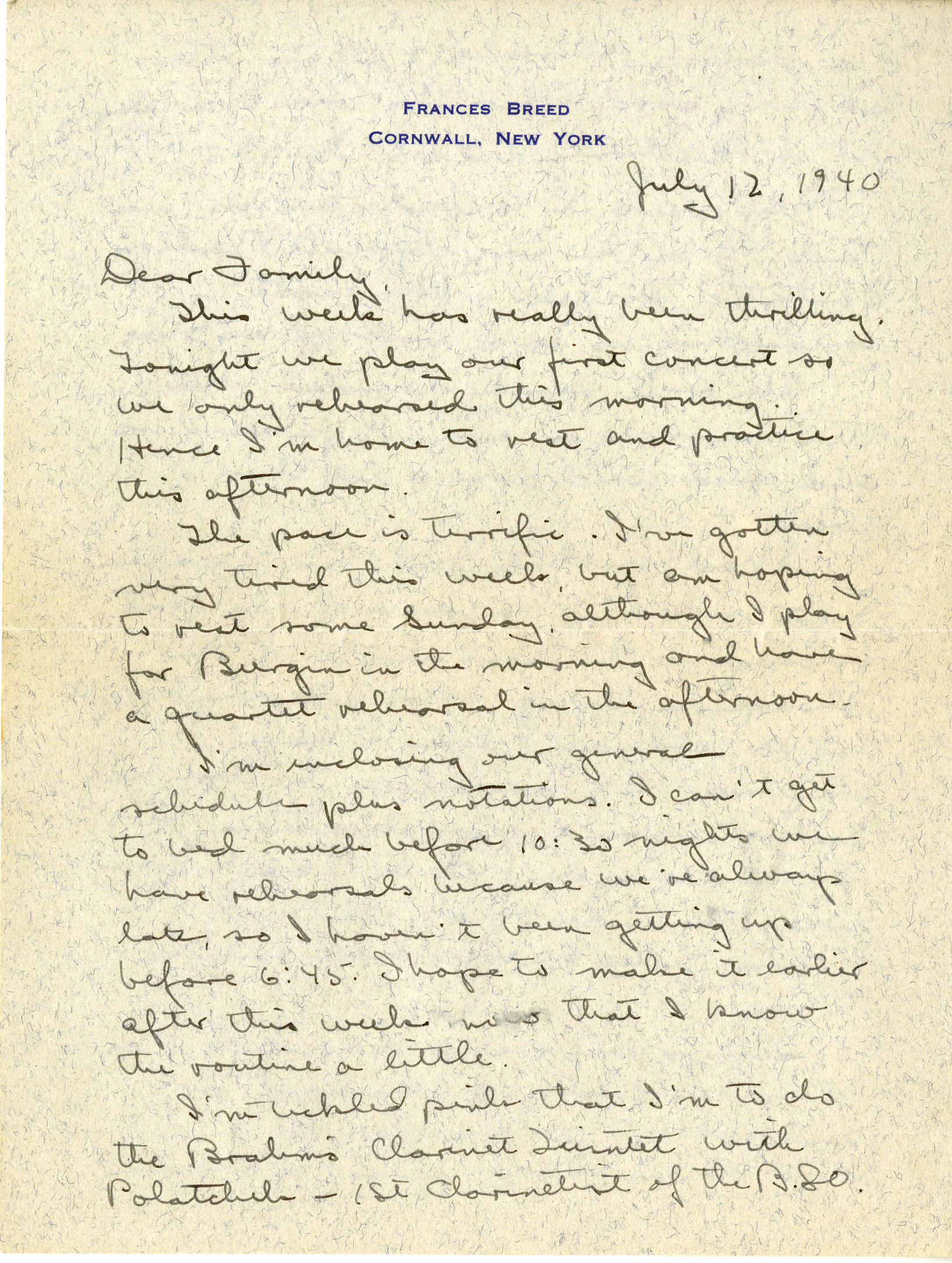 I’m tickled pink that I’m to do the Brahms’ Clarinet Quintet with Polatchek [sic, Polatschek] - 1st Clarinetist of the B.S.O. [continued on page 2]
