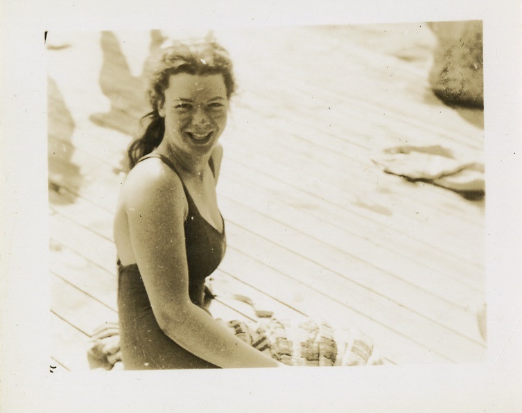A snapshot of Frances Breed enjoying the lake at Tanglewood, 1940