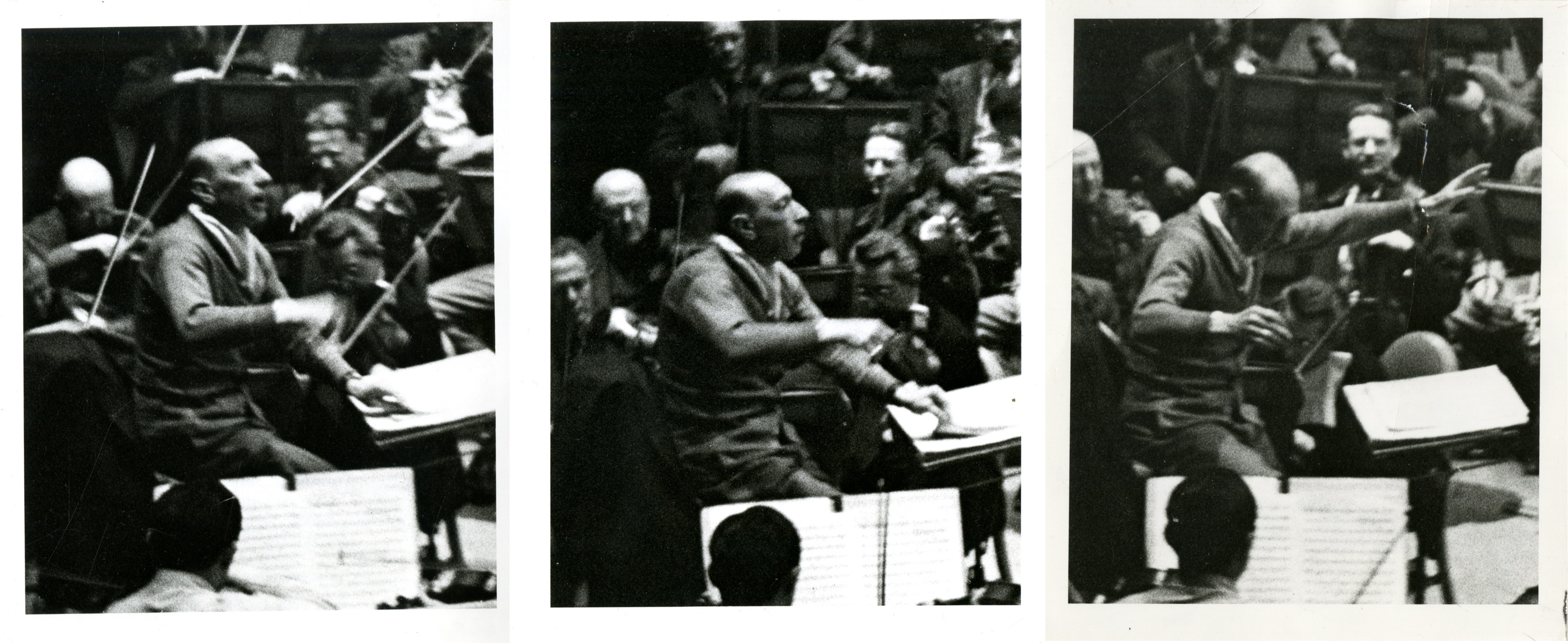 Snapshots of Igor Stravinsky rehearsing with the BSO, circa 1949