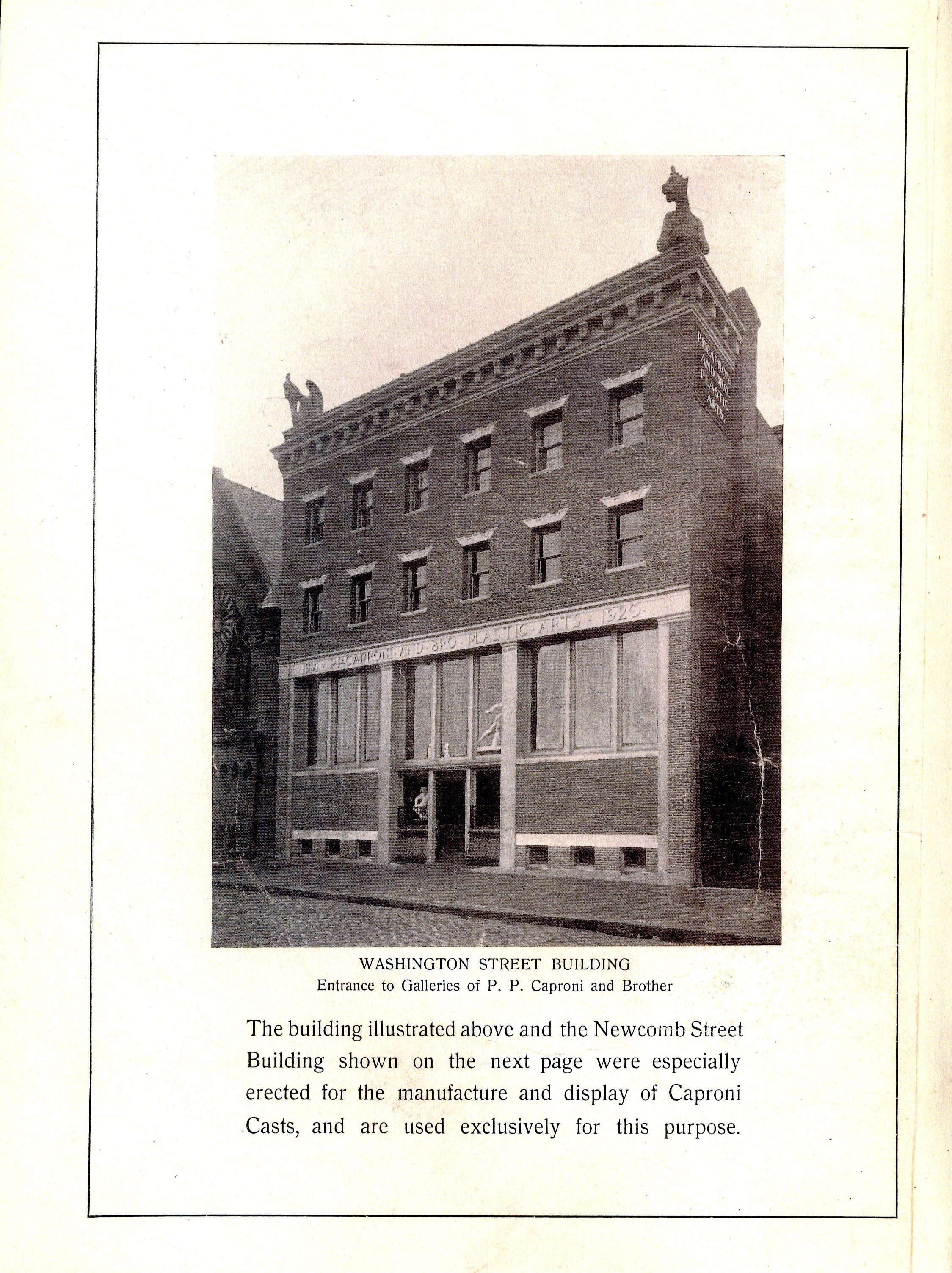 In 1900, Pietro Caproni (1862-1928) built the Caproni Gallery building at 1920 Washington Street in Boston to cast and house his reproductions of sculptures from major European museums.