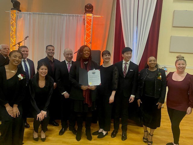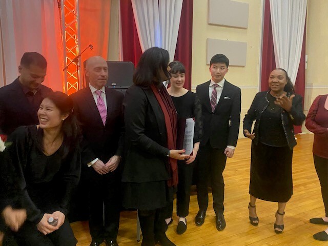 Our hostess for the event was the Reverend Myralande DesRosiers, the founder of the center and its spiritual and spirited founder, charming as she flew among the crowd in 3-inch heels. In attendance also was the mayor of Everett, City council members and around 90 eager listeners. The superb concert, featured Glen Cherry (Violin 1), Sophie Wang (Violin 2), Mary Ferillo (viola) and Will Chow (cello). What an honor as a BSAV member to welcome guests and to share music by Shostakovich and Mendelssohn with audiences beyond our regular symphony subscribers. Even more amazing were about 30 children who were transfixed with the music and performance, not a one fussing!