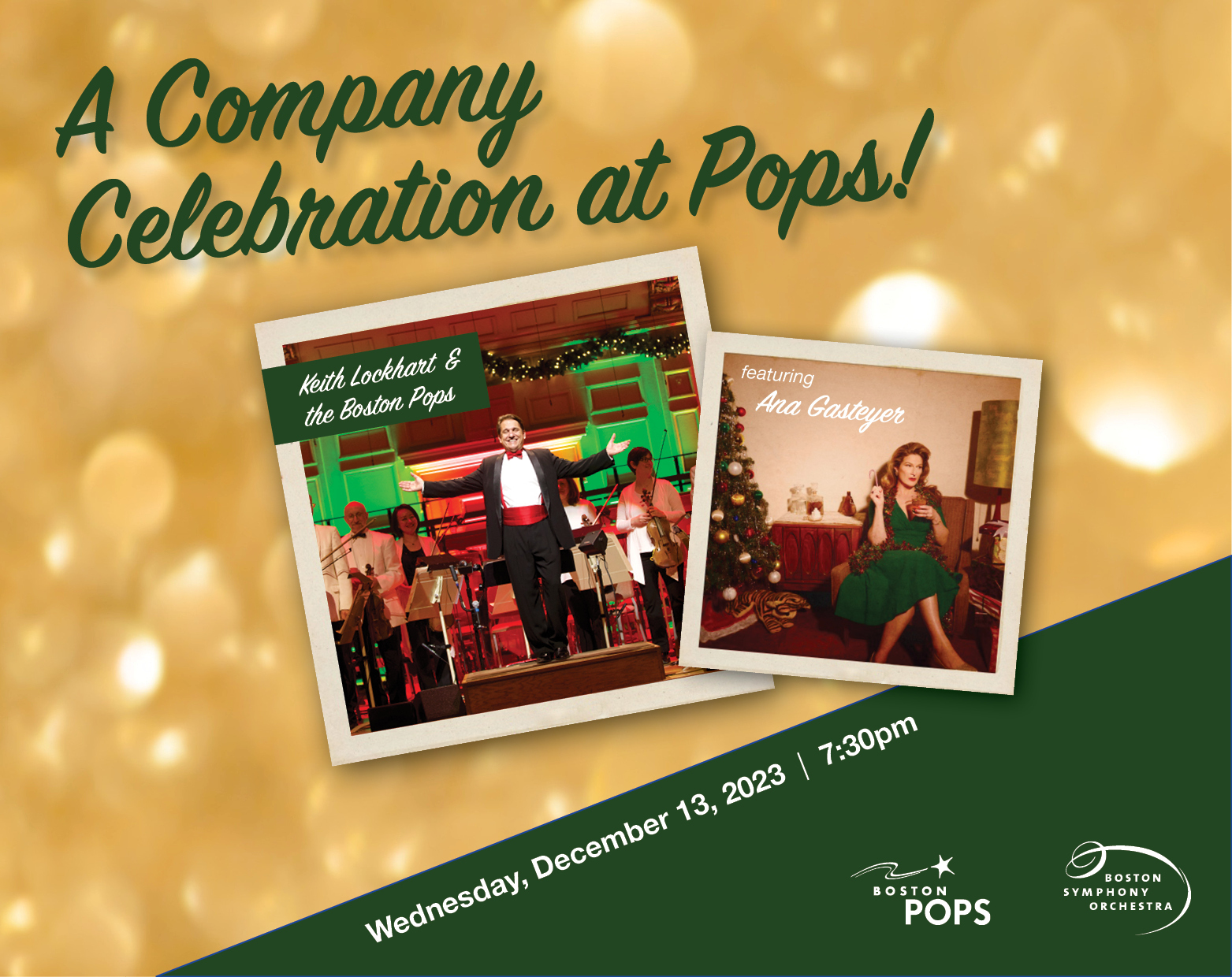 One of Boston's most anticipated holiday traditions, A Company Celebration at Pops, returns to Symphony Hall on Wednesday, December 13. This festive gala brings together members of Boston’s prestigious corporate community to support the Boston Pops. The exclusive concert will feature Julian and Eunice Cohen Boston Pops Conductor Keith Lockhart, the Boston Pops, award-winning comedian and former Saturday Night Live cast member Ana Gasteyer, and “‘Twas the Night Before Christmas” narrator Ian Saunders, Artistic Director of Project STEP. Boston Symphony Orchestra Trustee Dick Connolly will also be honored as one of the event’s longest and greatest supporters, marking 40 years of involvement with A Company Celebration at Pops.