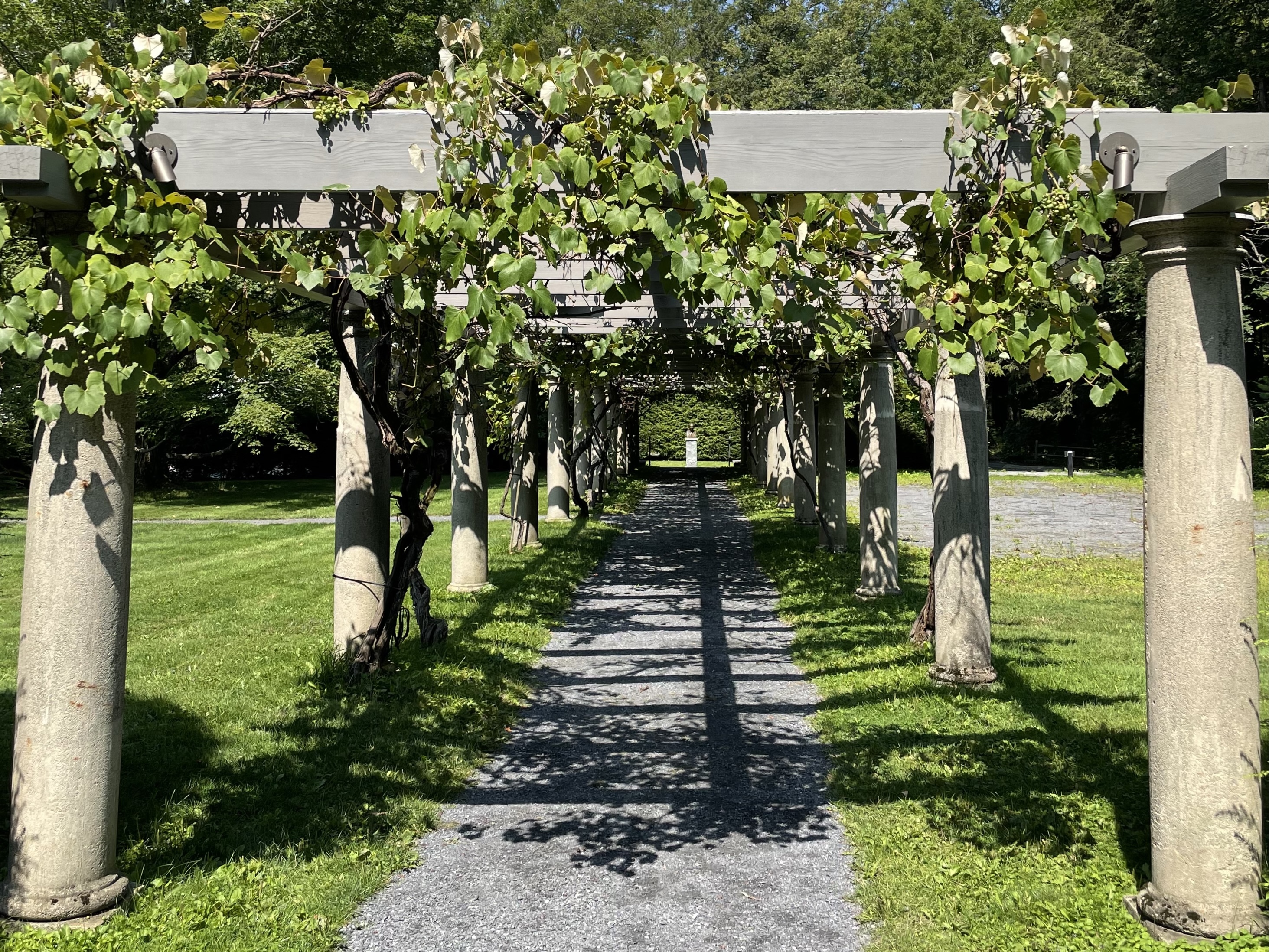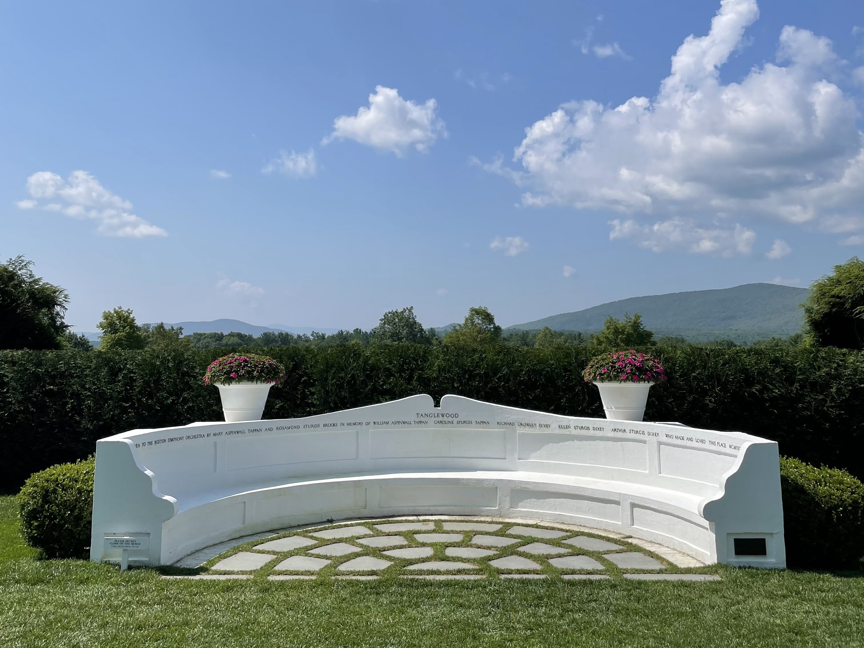 A formal garden, located in the northwest corner of campus, includes a vine-wrapped trellis, an easily-navigable hedge maze, and the acoustic wonder of a whispering bench. There, visitors can find their way to a bronze bust of composer Aaron Copland, commissioned from artist Penelope Jencks by John Williams to commemorate the very first Head of Faculty at the Tanglewood Music Center (TMC).