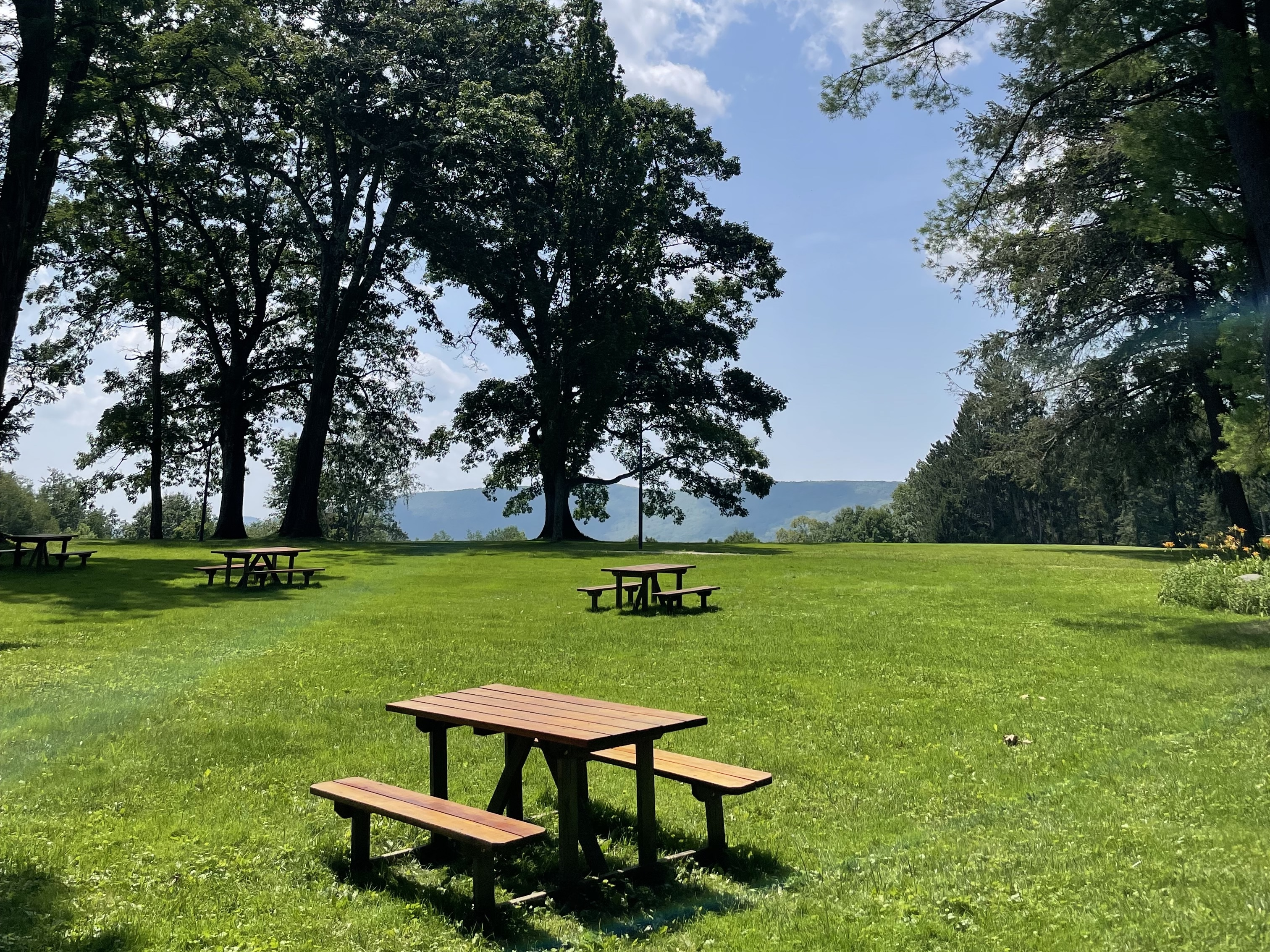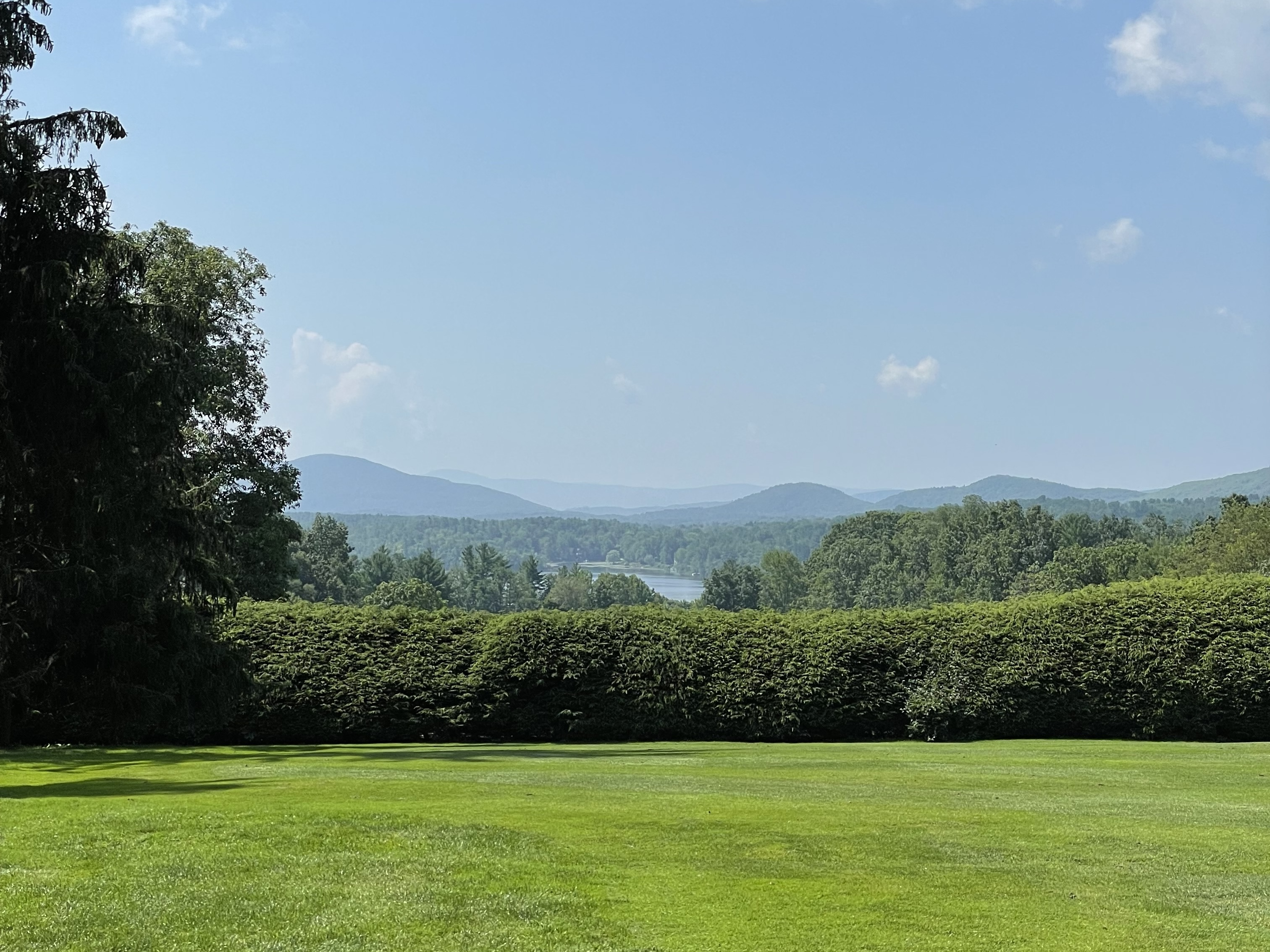Standing on the hill by the Visitors Center, one can take in an expansive view of Lake Mahkeenac, set against the blue rise of Monument Mountain in the distance.
